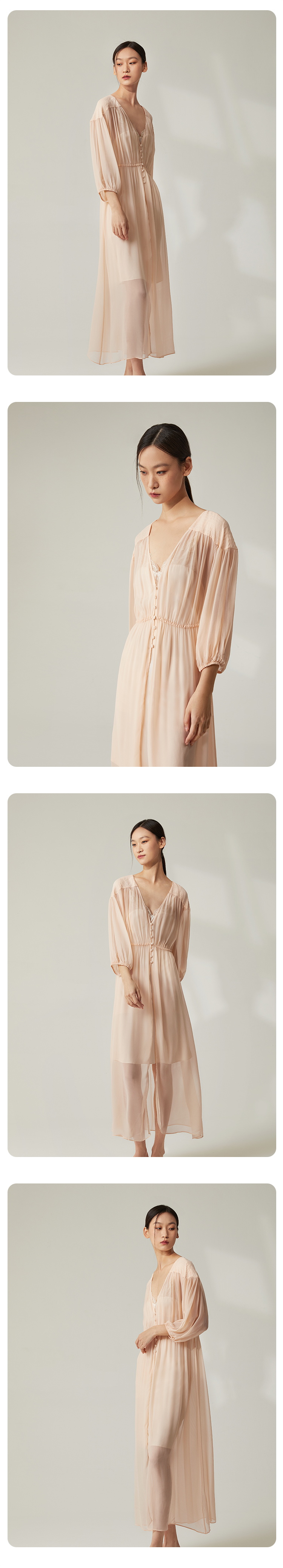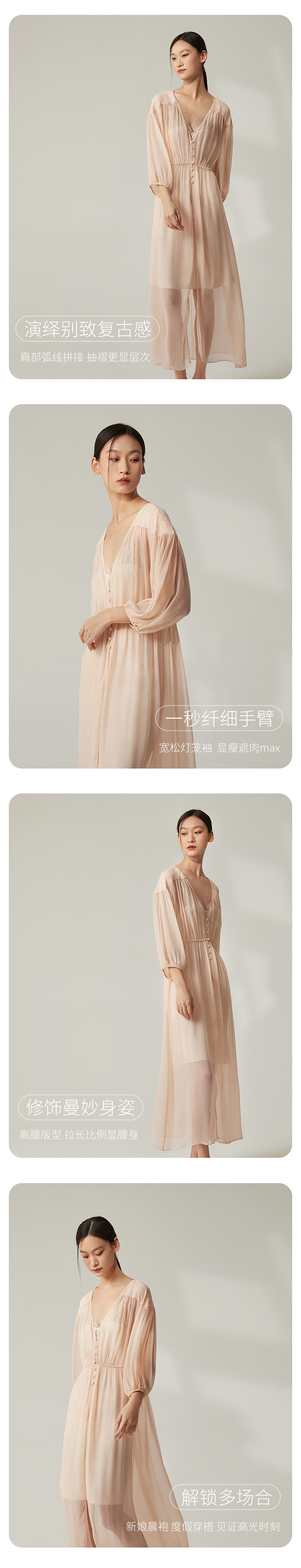 新品|新古典主义 复古宫廷睡袍SANGLUO香槟色桑蚕丝居家睡衣