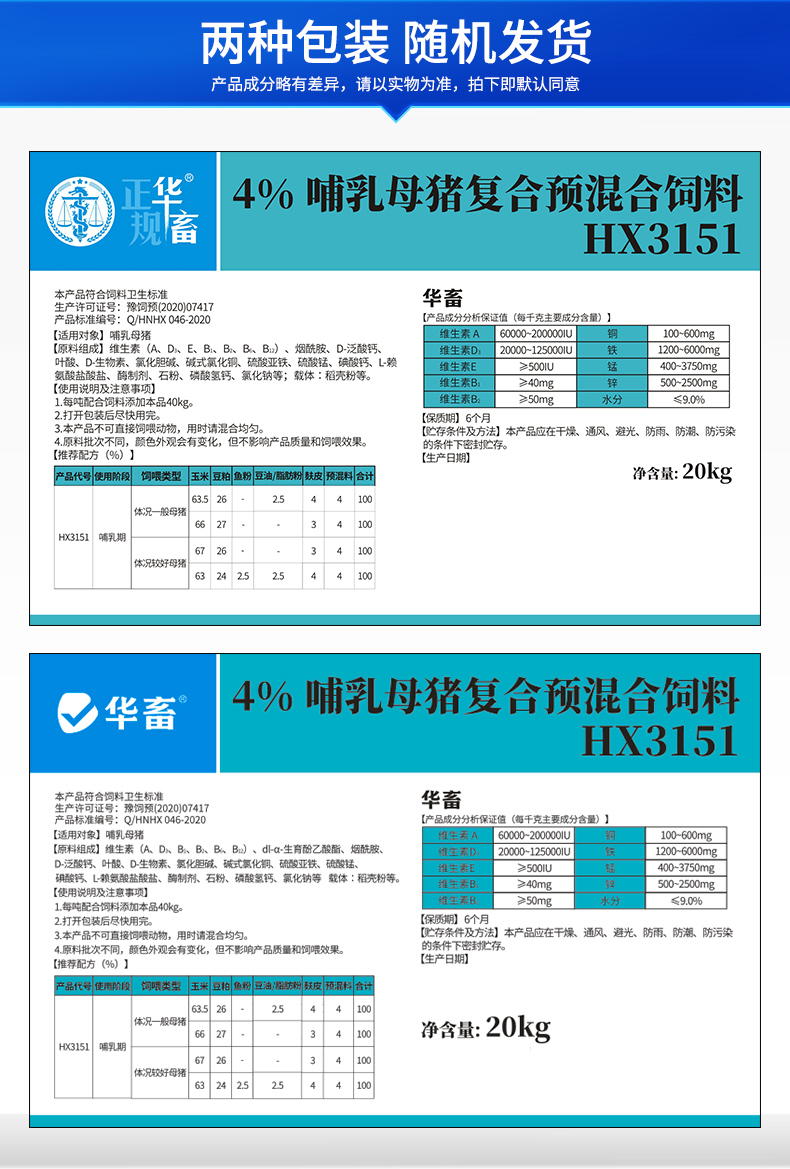 【整吨更优惠】华畜4%哺乳母猪复合预混料饲料20kg 奶水好防蹄裂防便秘