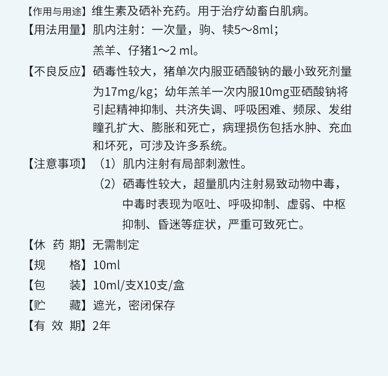 华畜亚硒酸钠维生素E注射液10ml*10支 幼畜白肌病 肌肉萎缩 补充维生素及硒