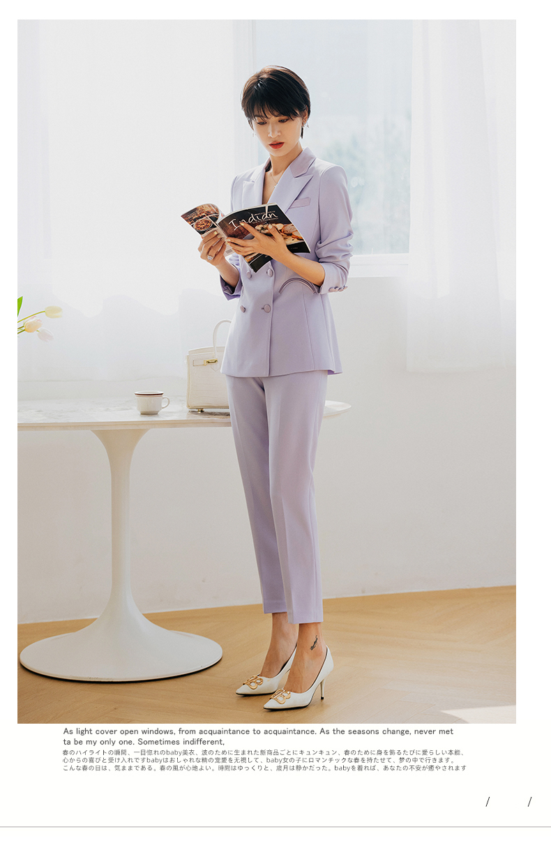 紫色长袖西装套装女气质时尚高端职业装女春秋修身西服正装