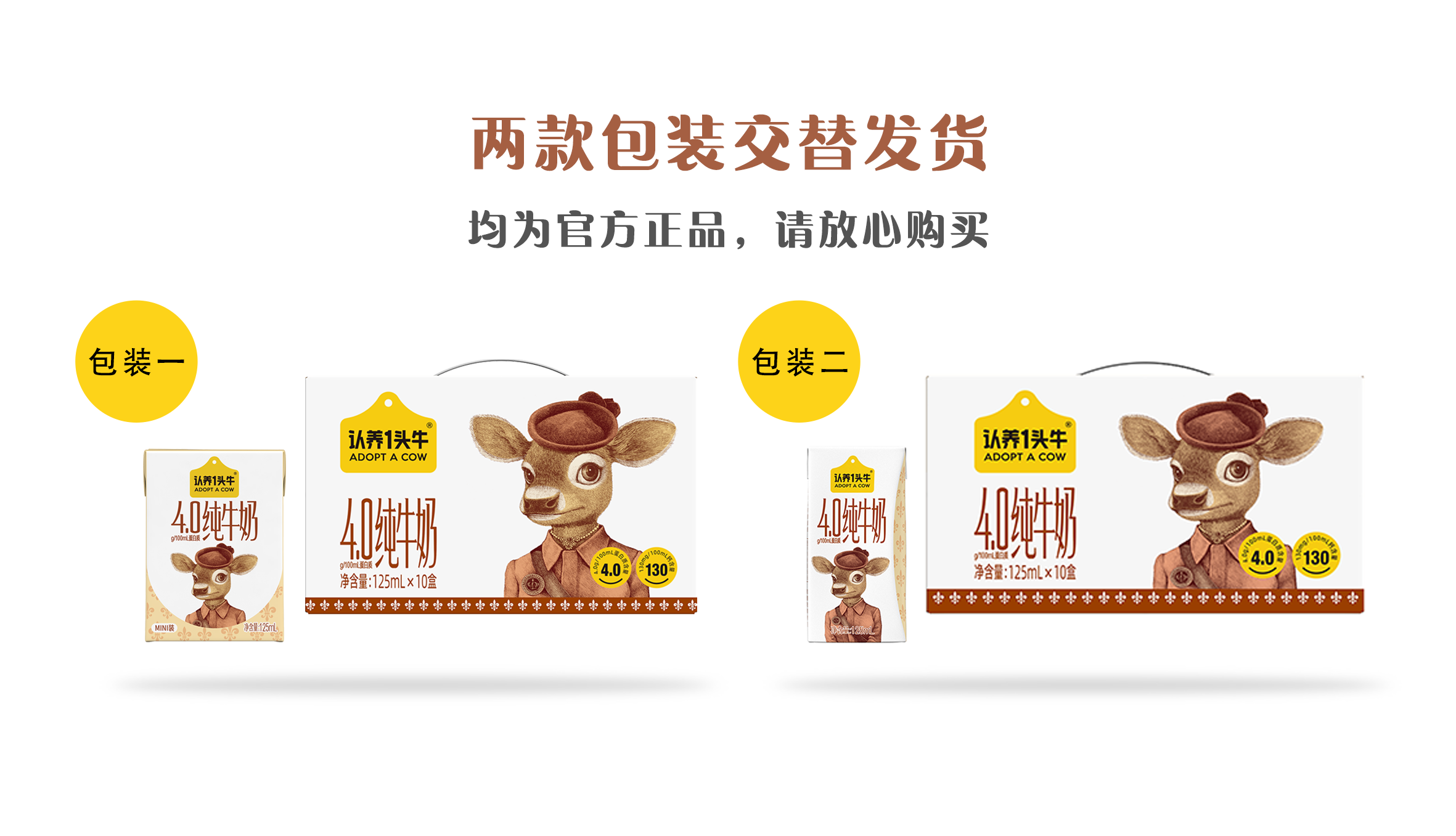 【日期新鲜】认养一头牛娟姗纯牛奶4.0蛋白质125mL*10盒