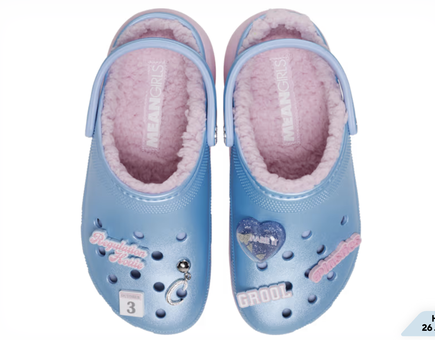 🩷 超软毛绒内衬,冬天穿也暖暖哒~ 再配上定制版Jibbitz™挂件,“Regulation Hottie” & “Grool”,谁能拒绝这份独特的Mean Girls风?!
