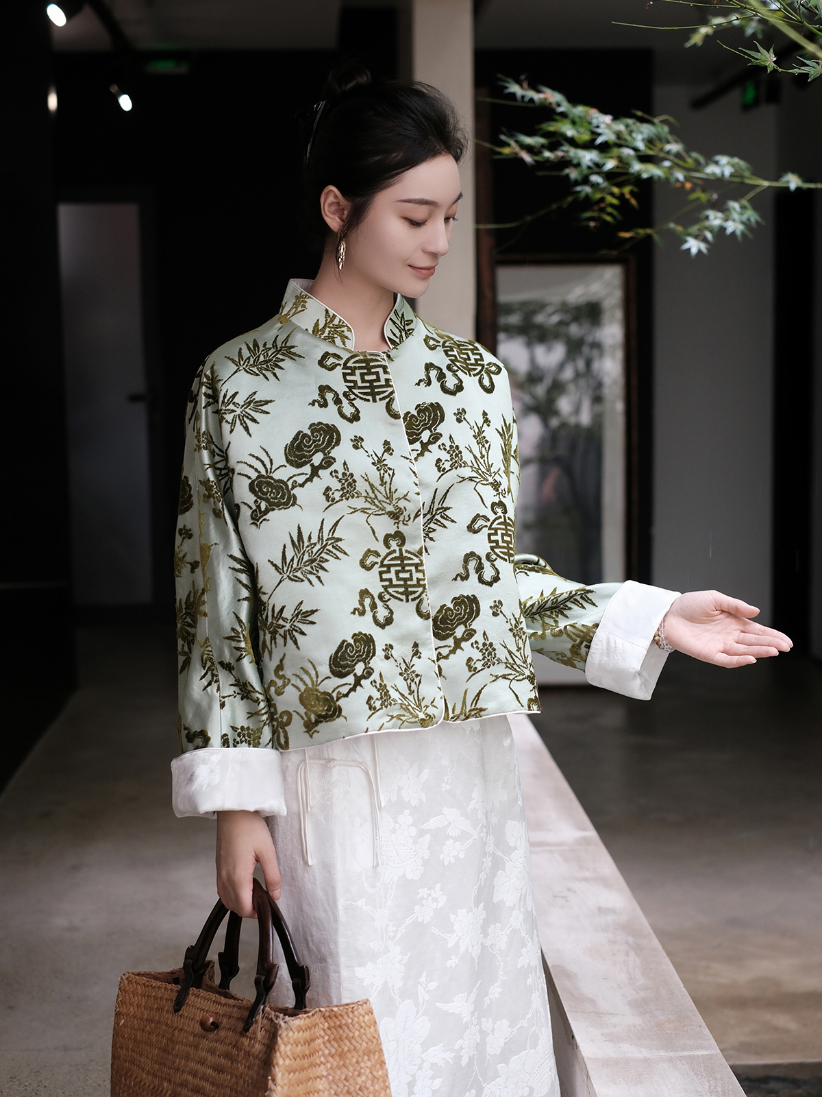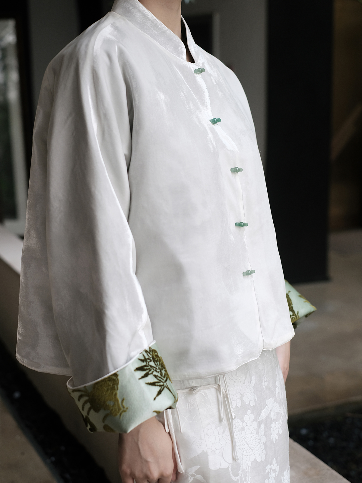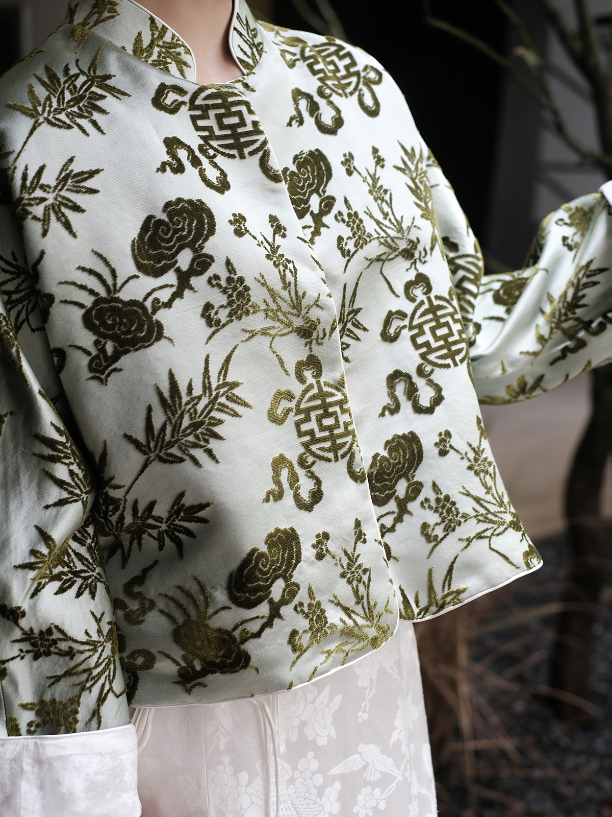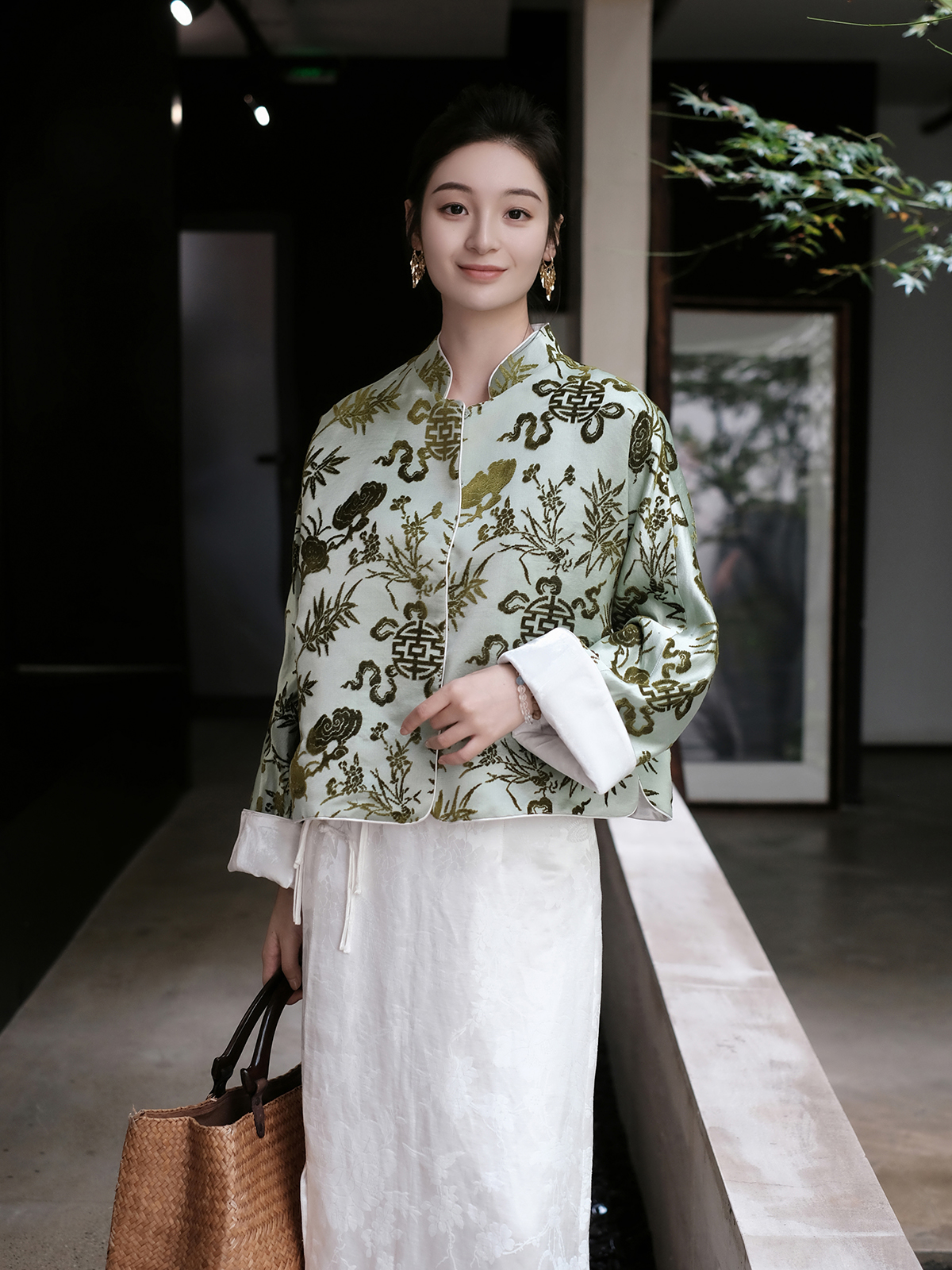 盛唐牡丹 | 松鼠葡萄真丝立领对襟外套(不夹棉-松鼠葡萄闪光面料款)