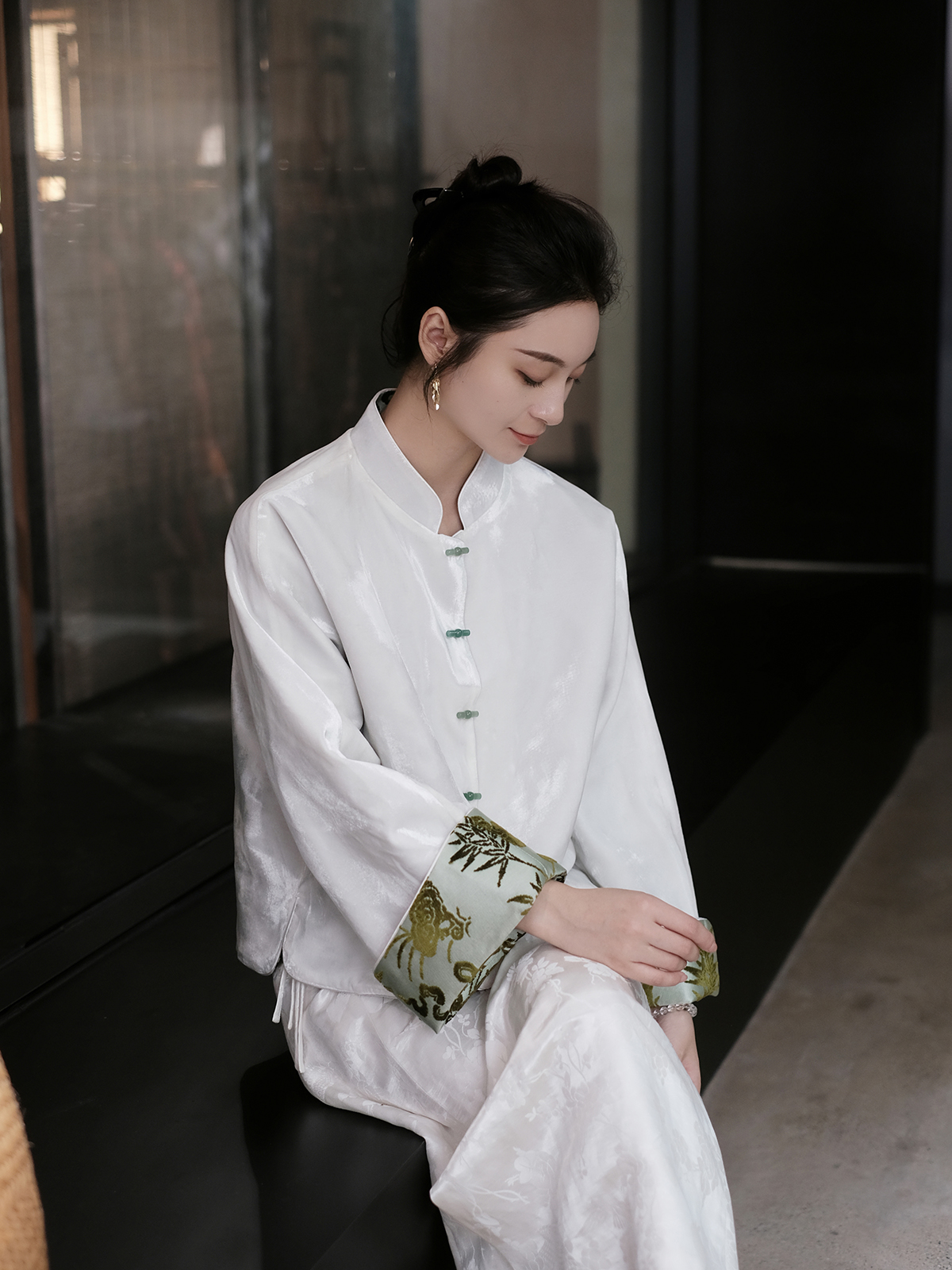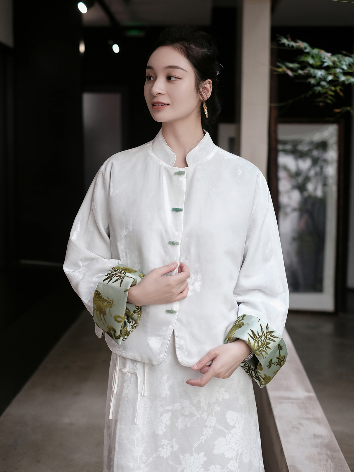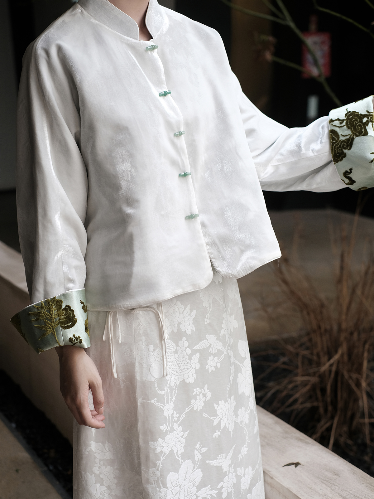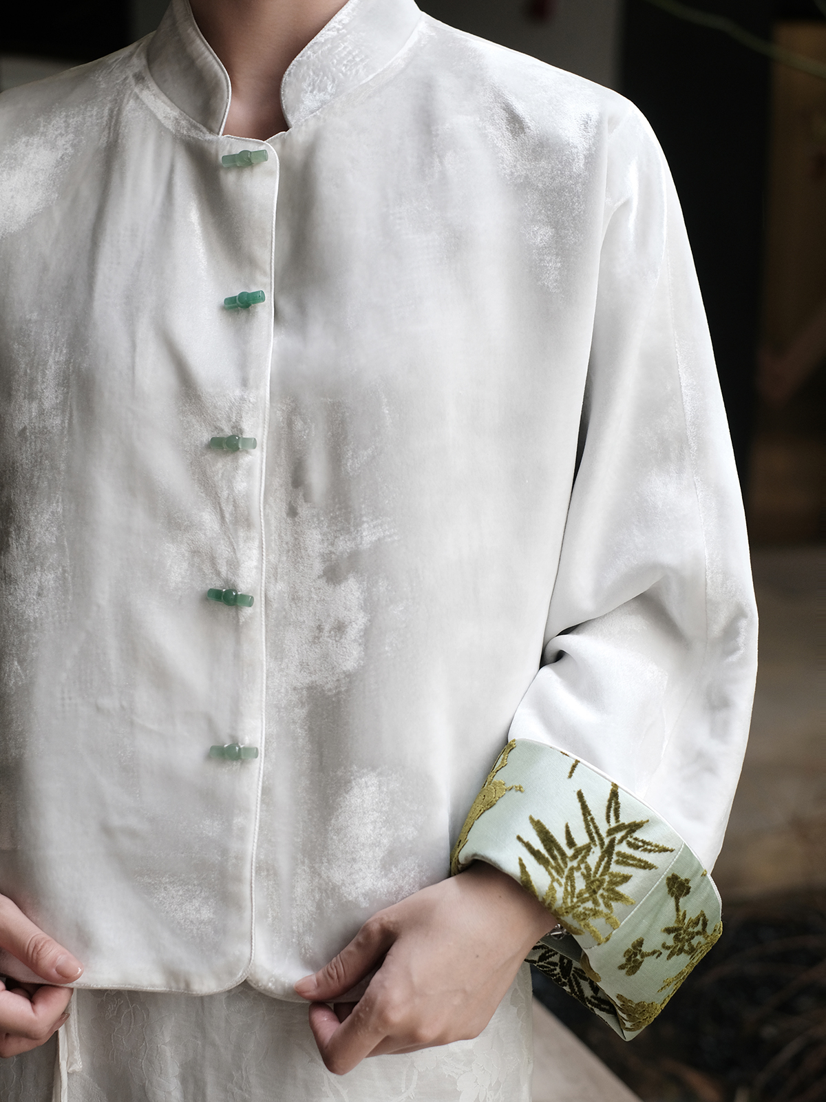 盛唐牡丹 | 松鼠葡萄真丝立领对襟外套(不夹棉-松鼠葡萄闪光面料款)