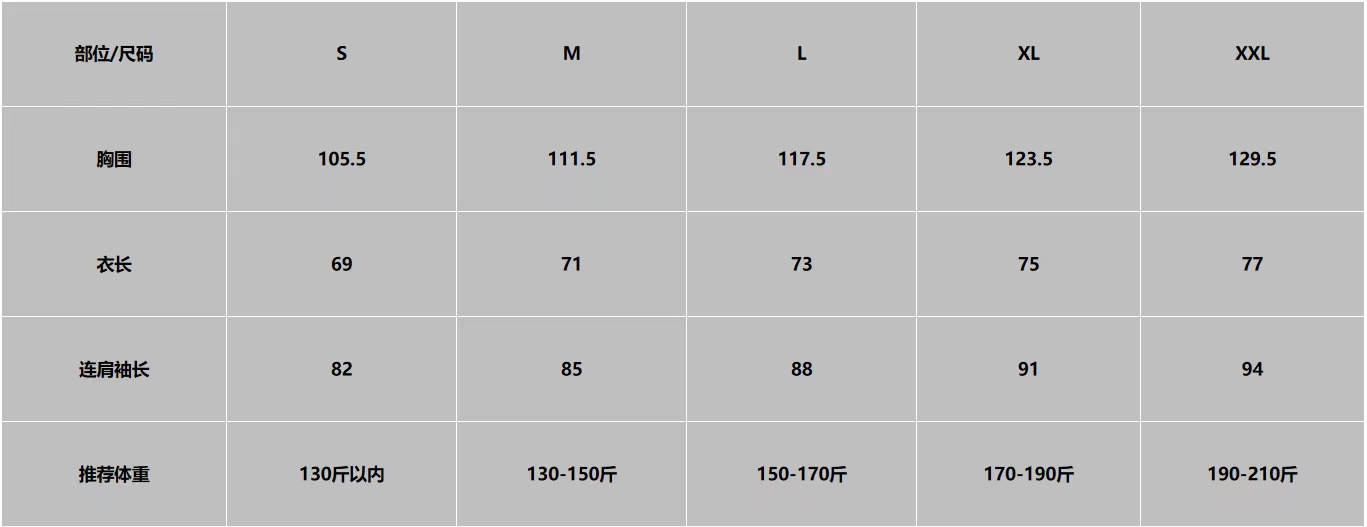 尺码:S.M.L.XL.XXL 最大建议穿到210斤左右!