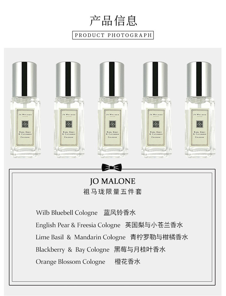 【女神节大促 限时特惠】Jo Malone London/祖玛珑祖马龙《配手提袋》香水套盒礼盒9ml*5 持久留香五件套装