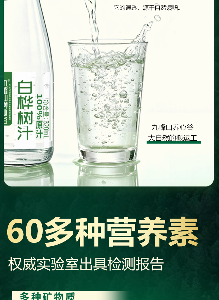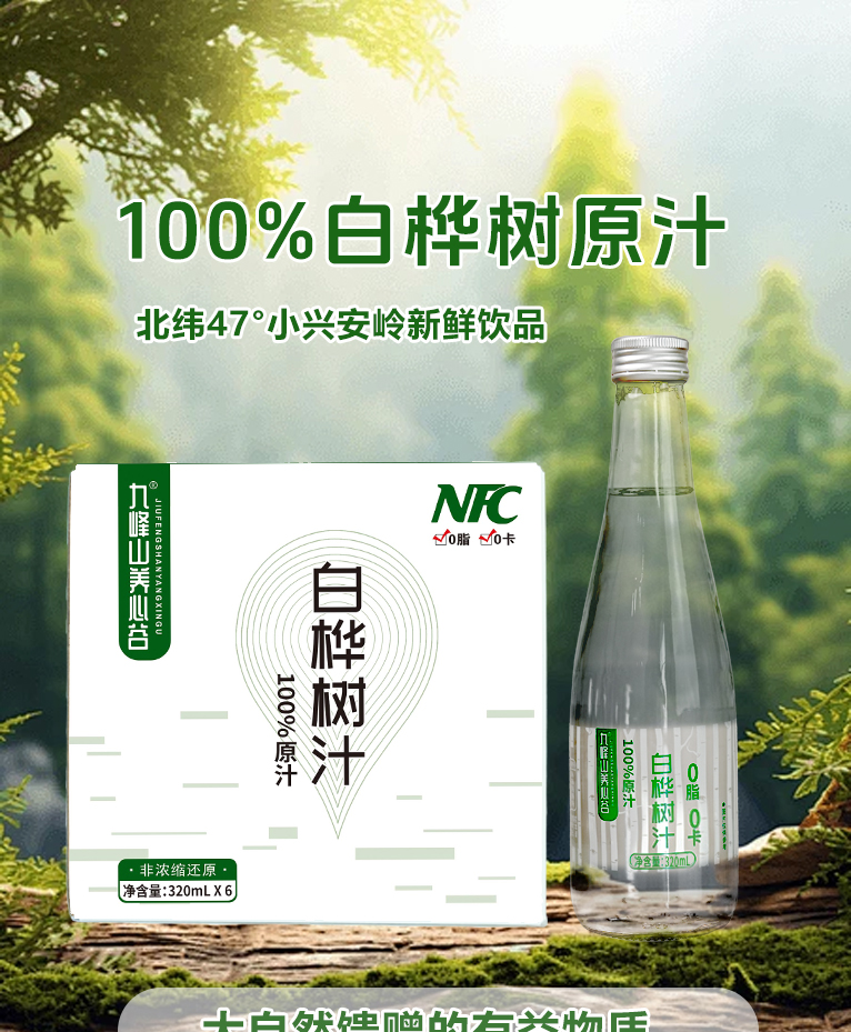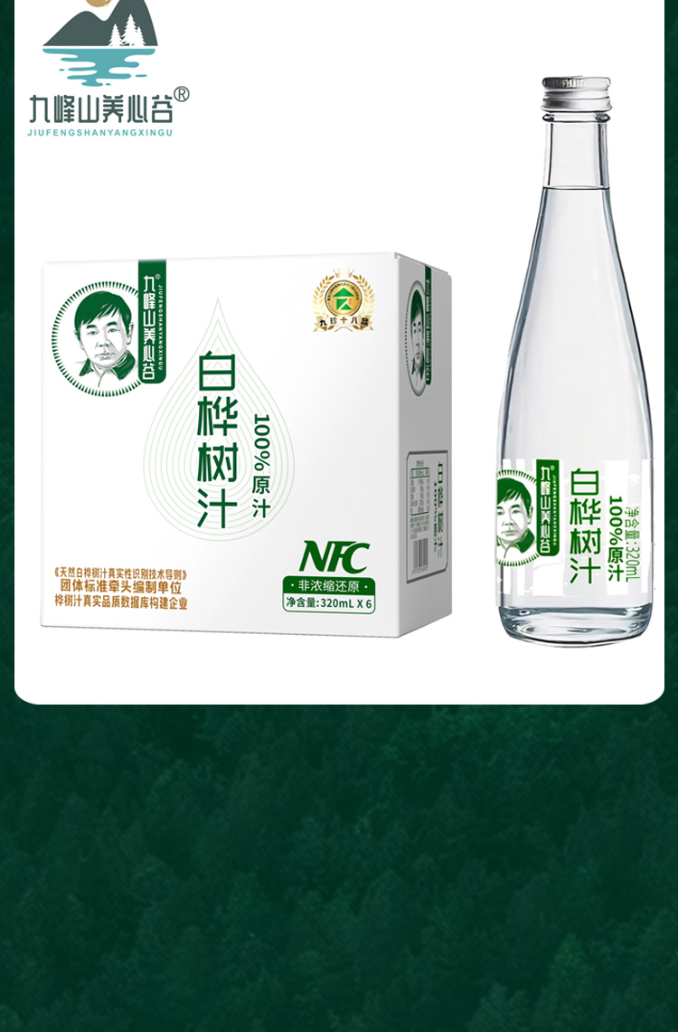 【顺丰包邮】九峰山养心谷白桦树汁小兴安岭黄金产区养生健康饮品天然植物饮料320ml*6瓶/箱