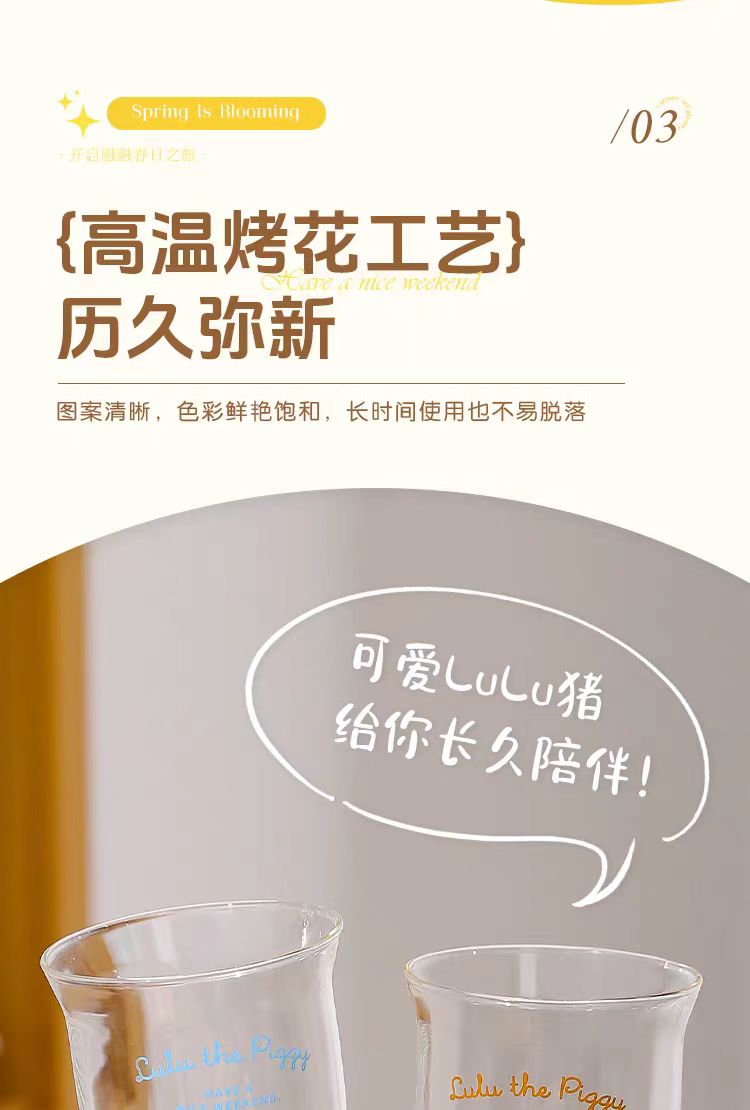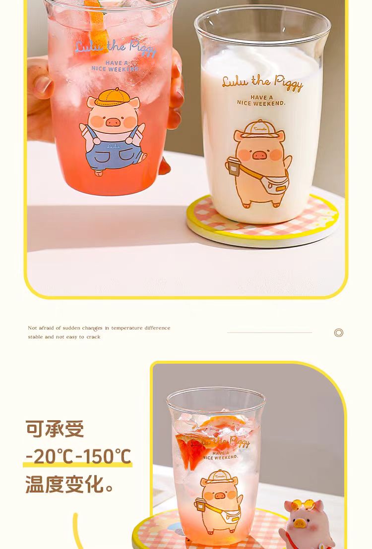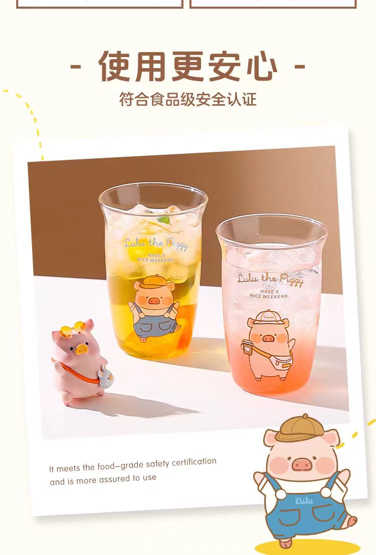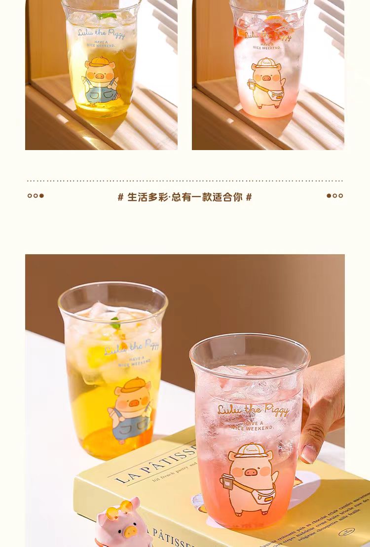4楼Eubelle欧蓓 川岛屋&lulu猪联名 高硼硅玻璃杯500ml 咖啡啤酒果汁牛奶杯 活动价:19.9元