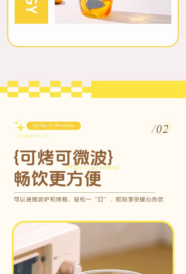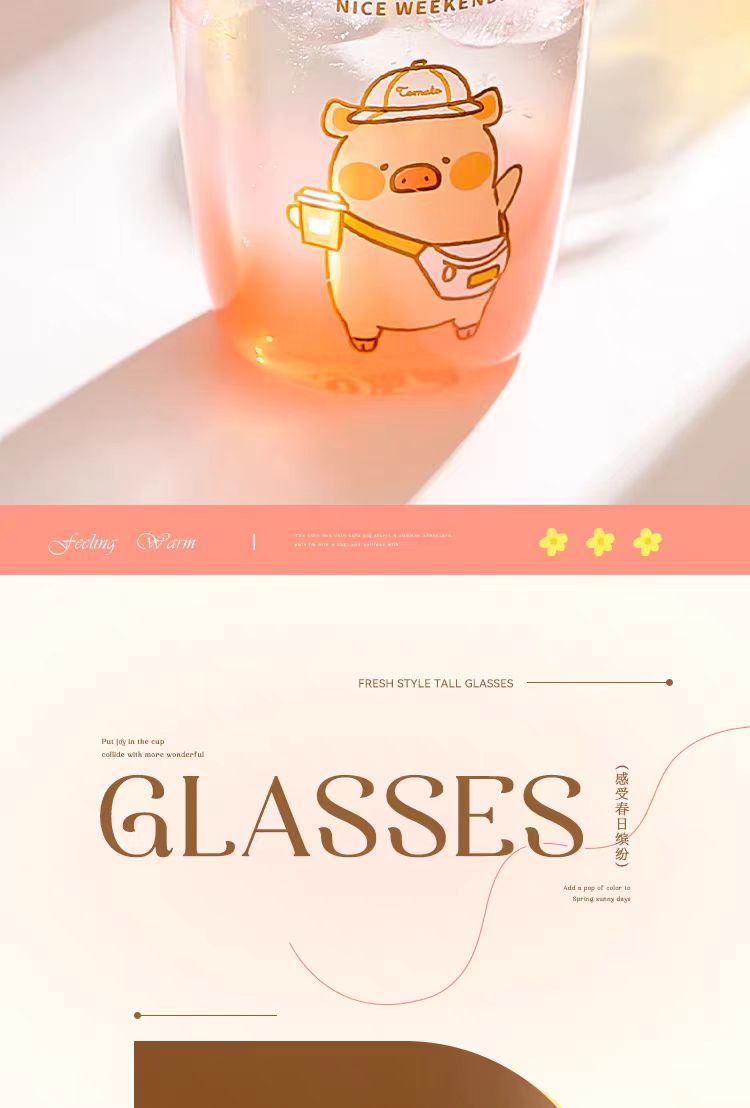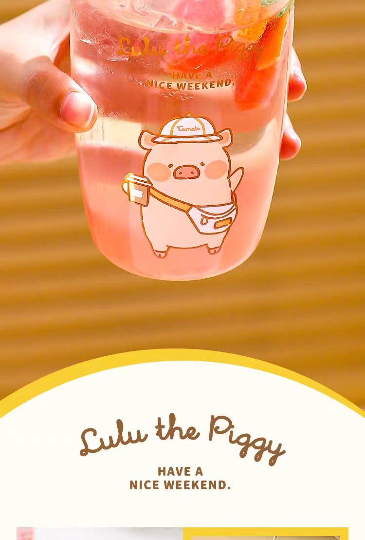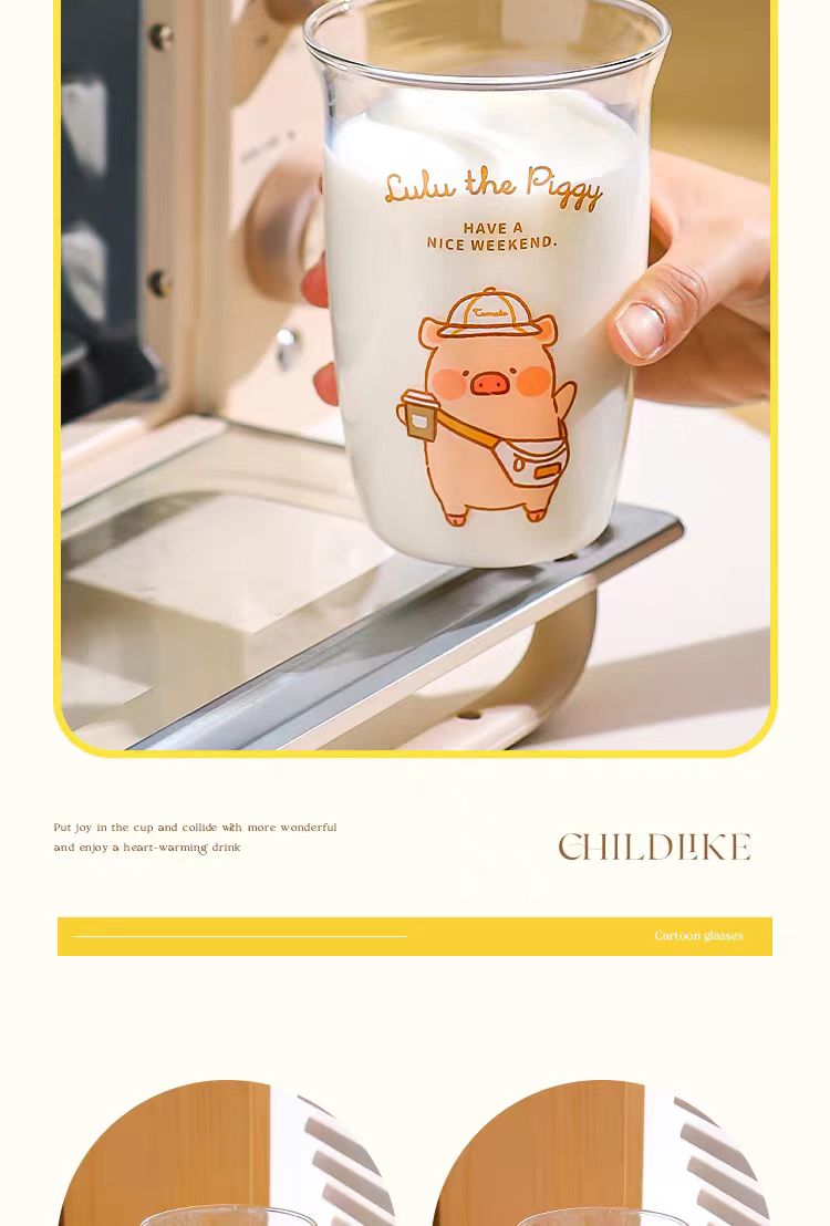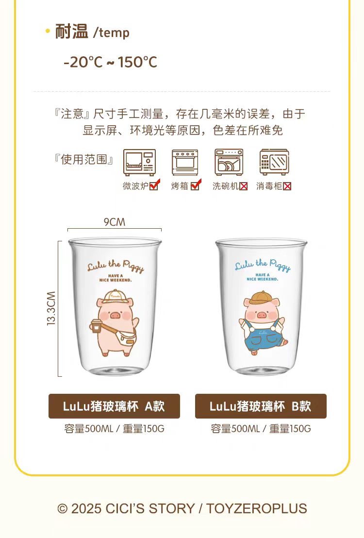 4楼Eubelle欧蓓 川岛屋&lulu猪联名 高硼硅玻璃杯500ml 咖啡啤酒果汁牛奶杯 活动价:19.9元