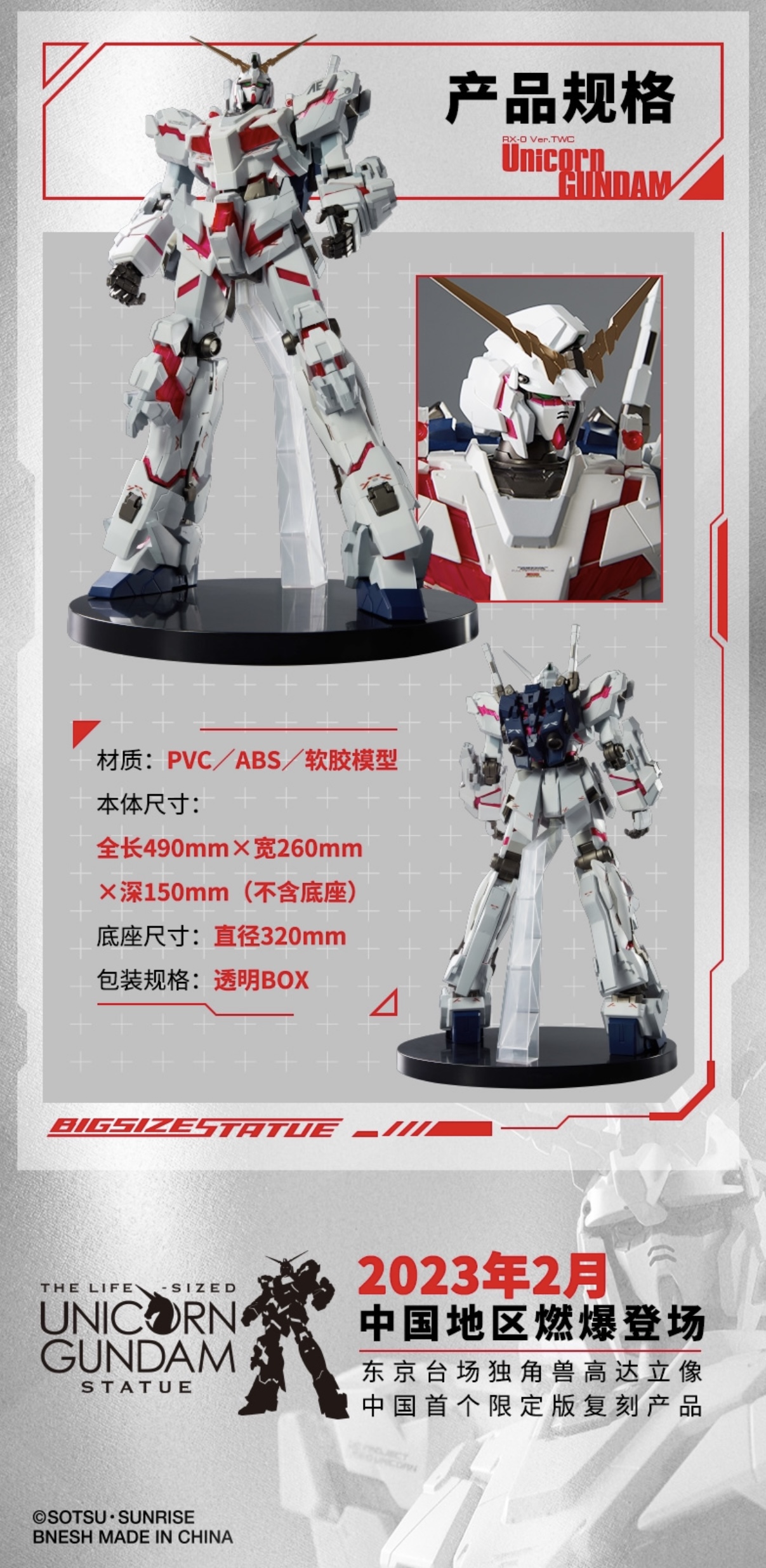 万代 BN FIGURE 49cm 独角兽高达 东京立像成品 VER.TWC 手办模型
