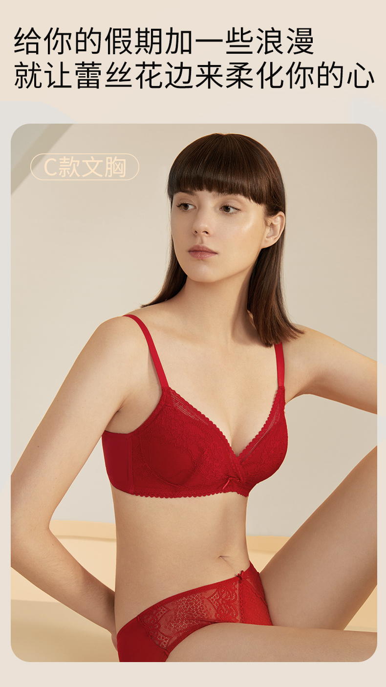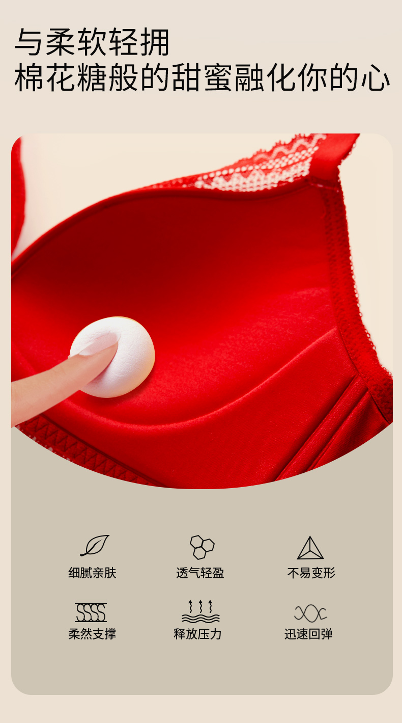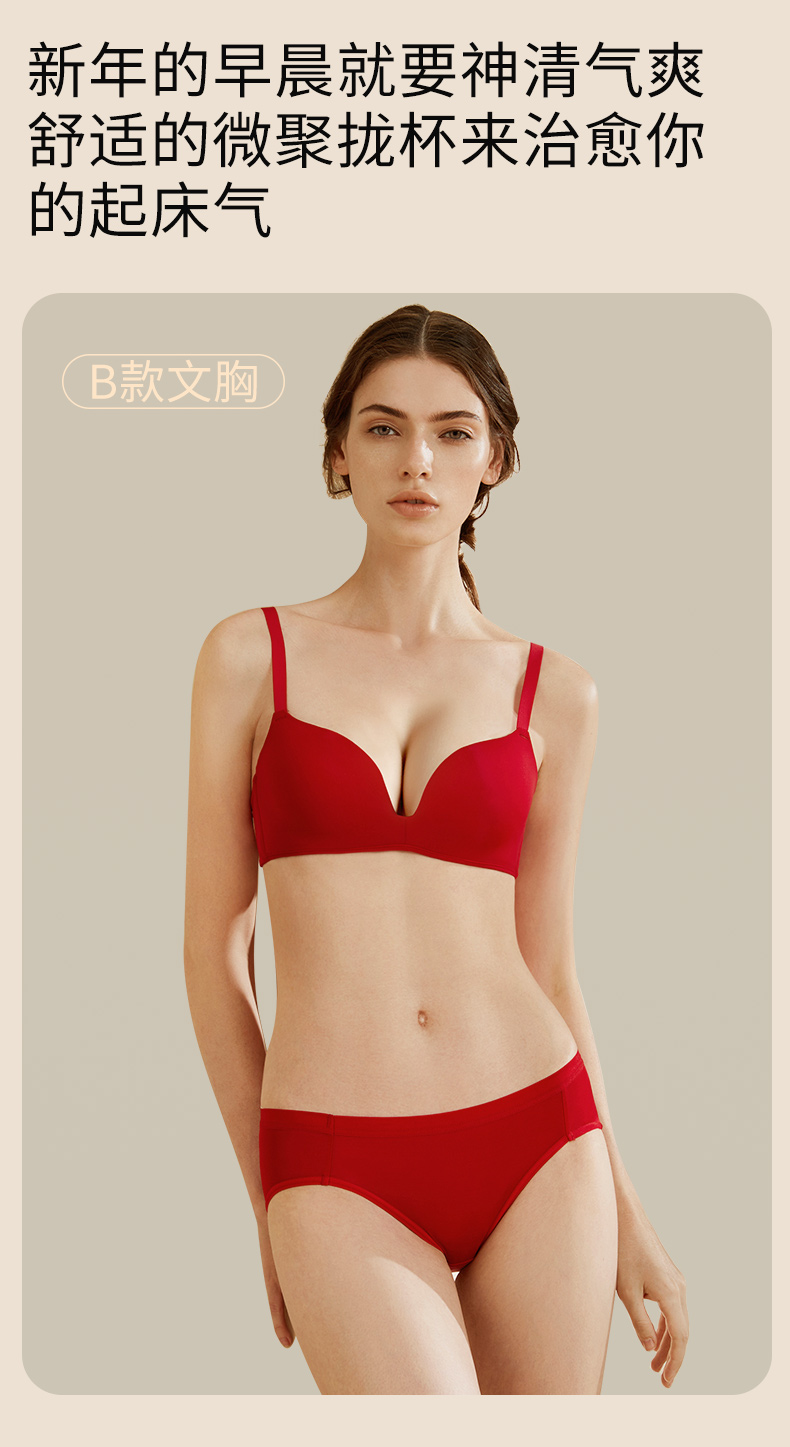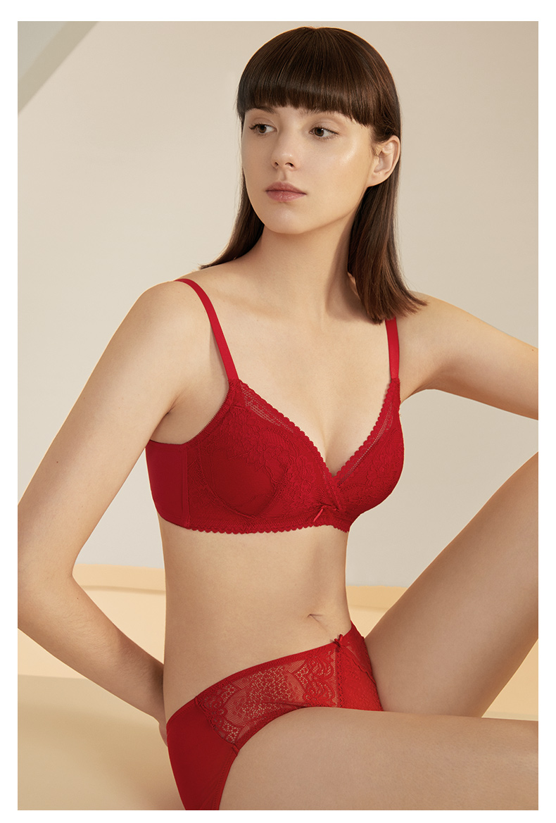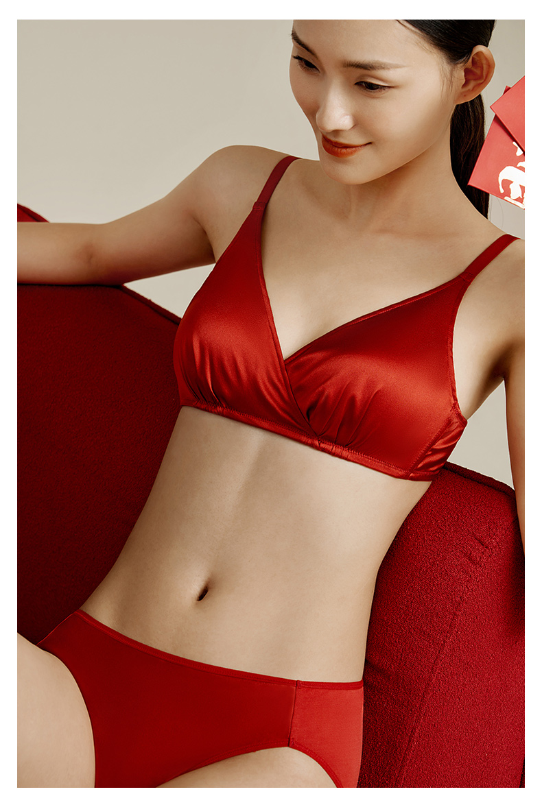 一起红】金三塔桑蚕丝文胸套装红色婚庆亲肌棉文胸内裤本命年 NZFDC305LH/NZF7A306LH/NZFAB307LH