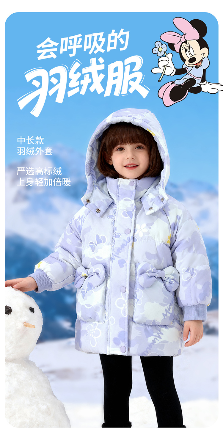 迪士尼女童冬款羽绒外套中长款羽绒服XD4DS109