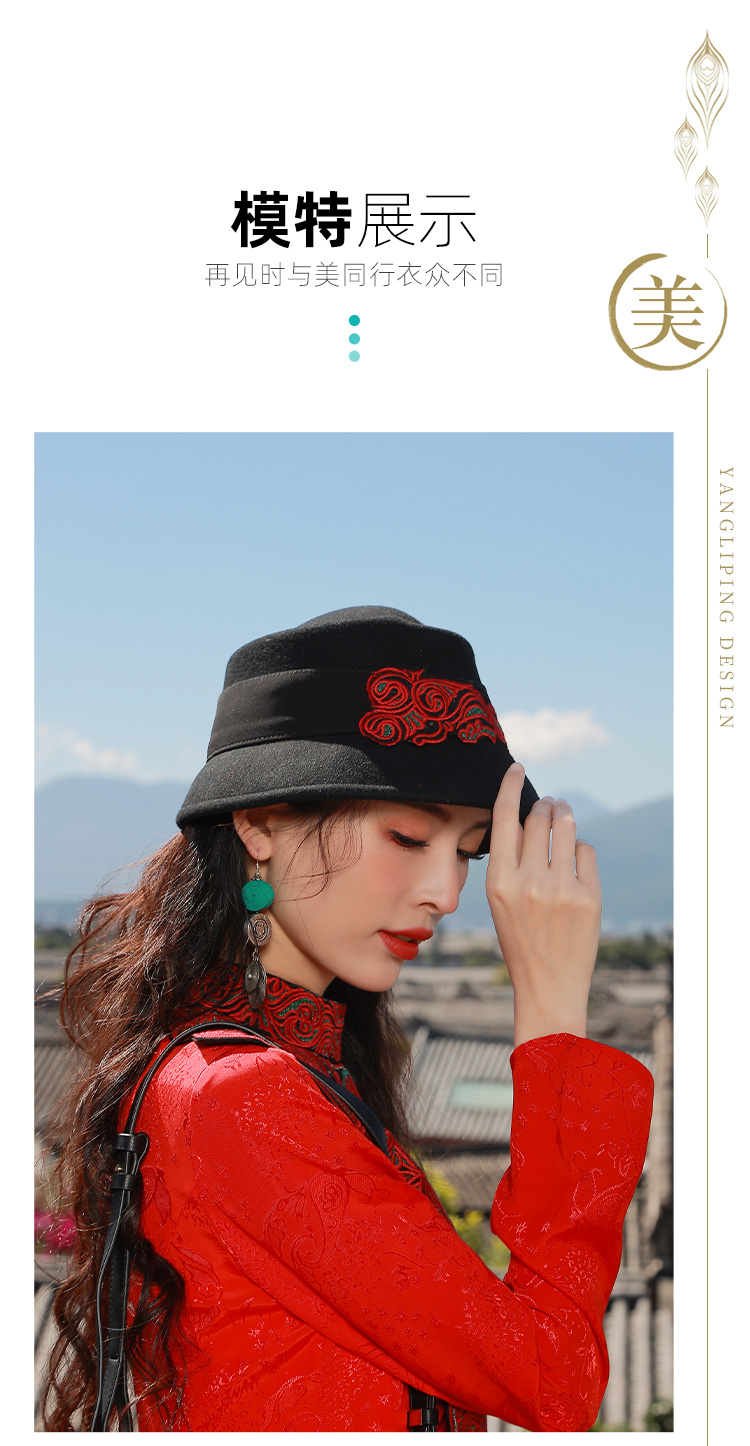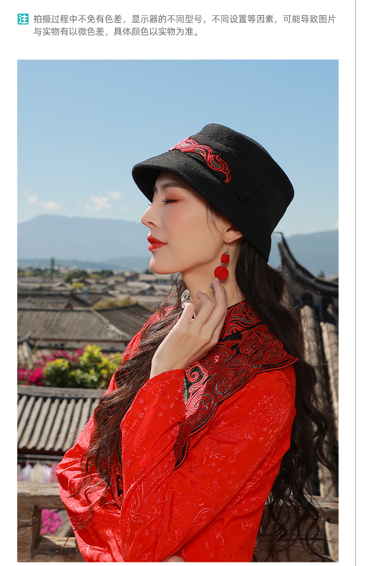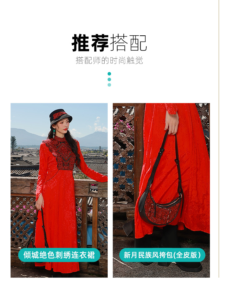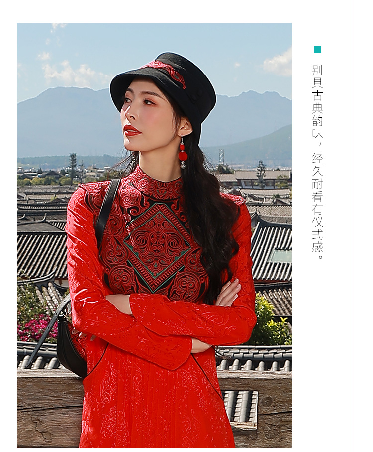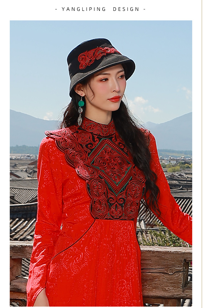 千金裘绣花复古连衣裙 | 杨丽萍老师同款 | 藏蓝色 红色