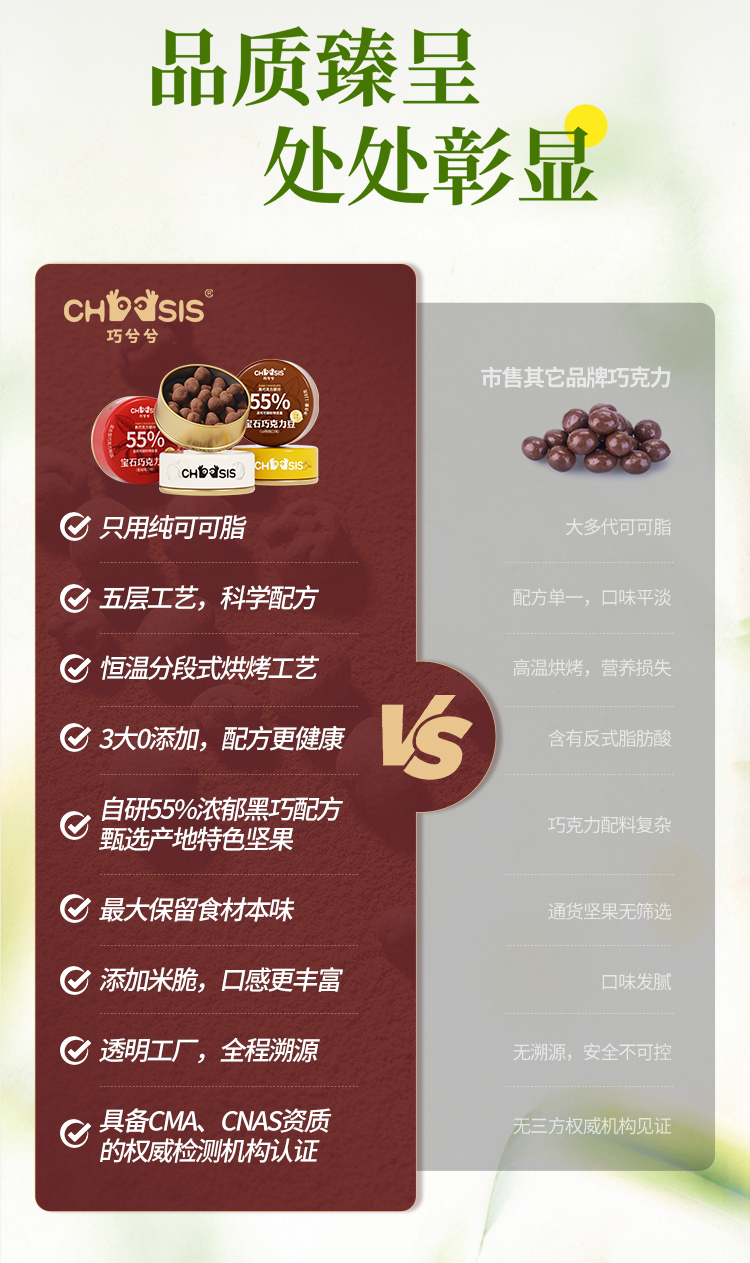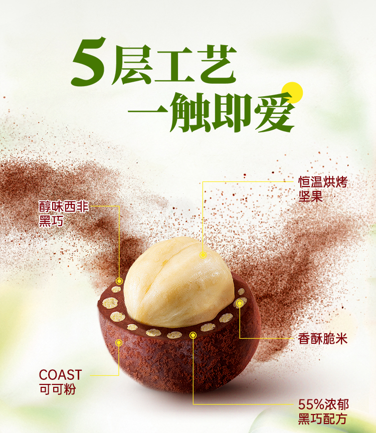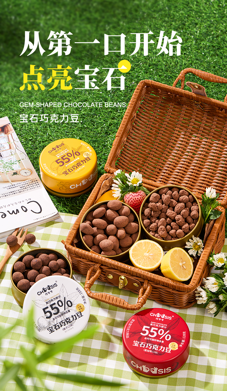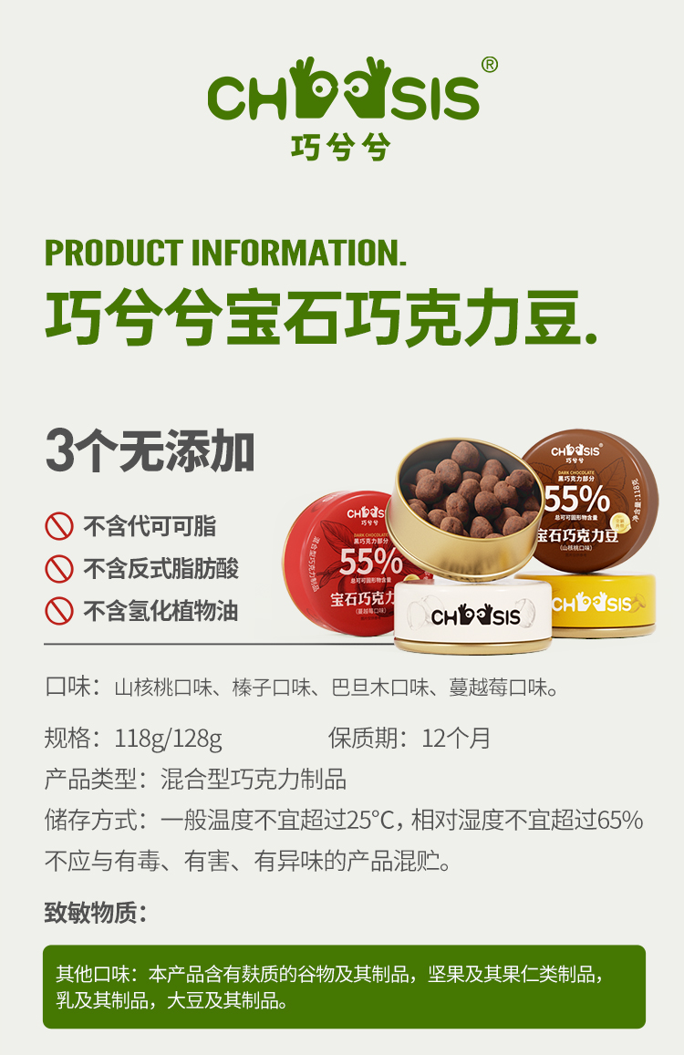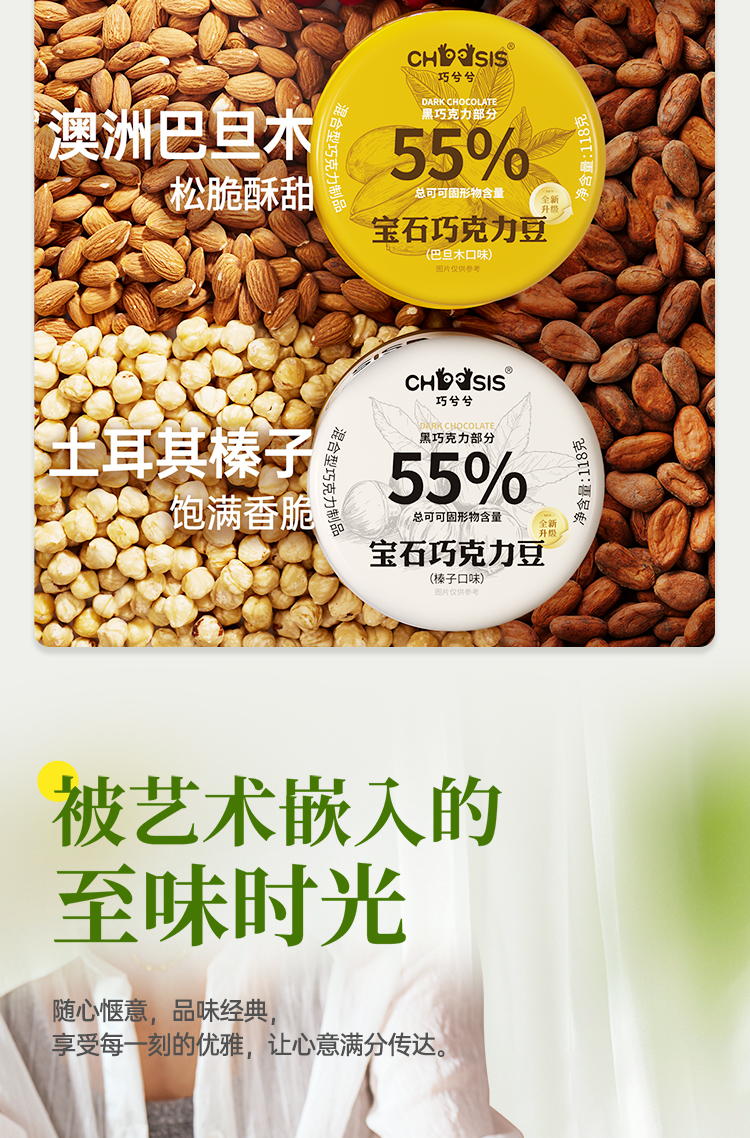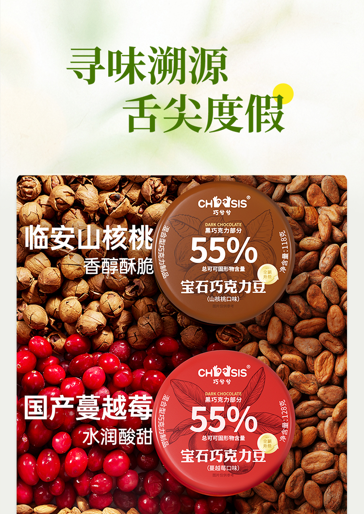 巧兮兮纯可可脂宝石系列坚果巧克力豆山核桃巴旦木蔓越莓