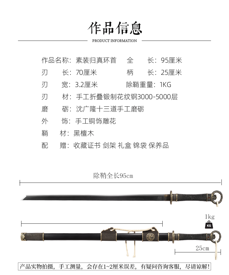 归真环首刀剑手工传统一体刀剑花纹钢刀剑龙泉沈广隆宝剑 未开刃