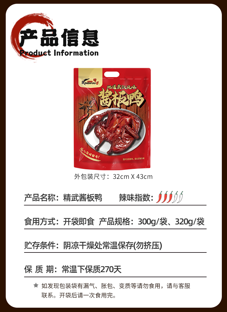 【宜昌助农馆】精武酱板鸭 320g*2袋