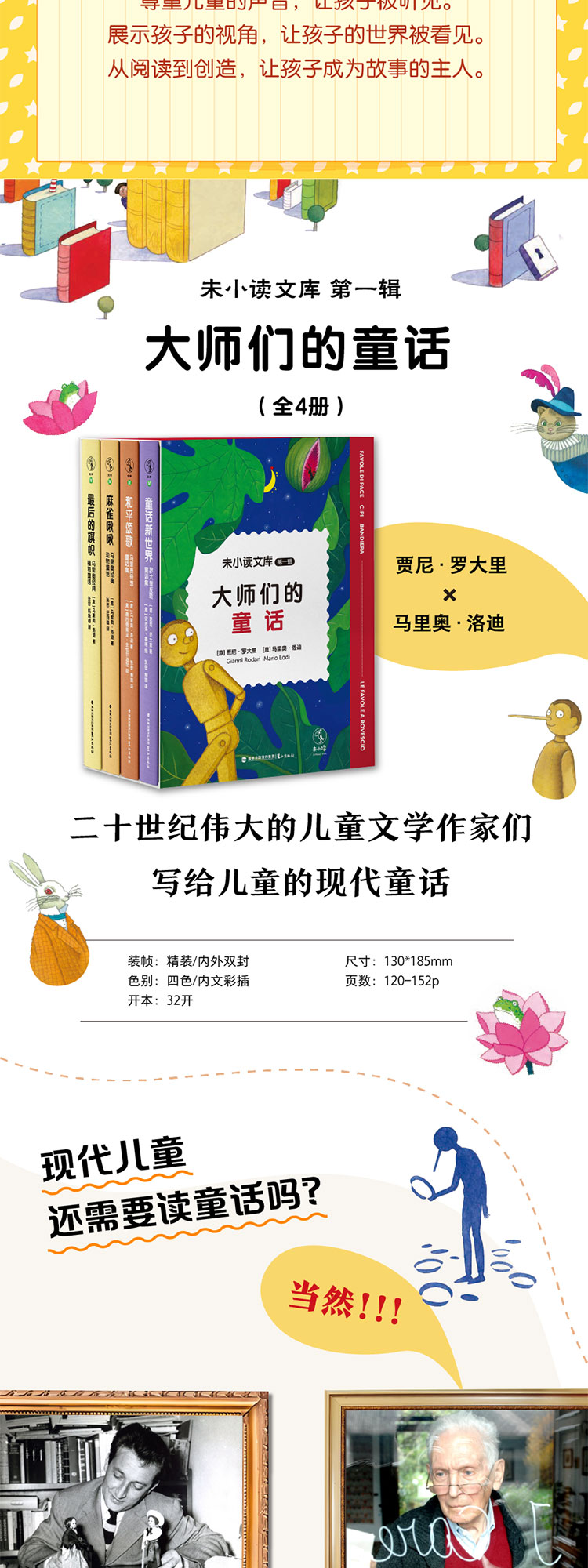 【6-9岁】【热卖】未小读文库:大师们的童话(第一辑精装全4册/单册,L码6岁+),赠阿甲老师导读手册,独家加赠“童话大富翁”互动游戏组合。