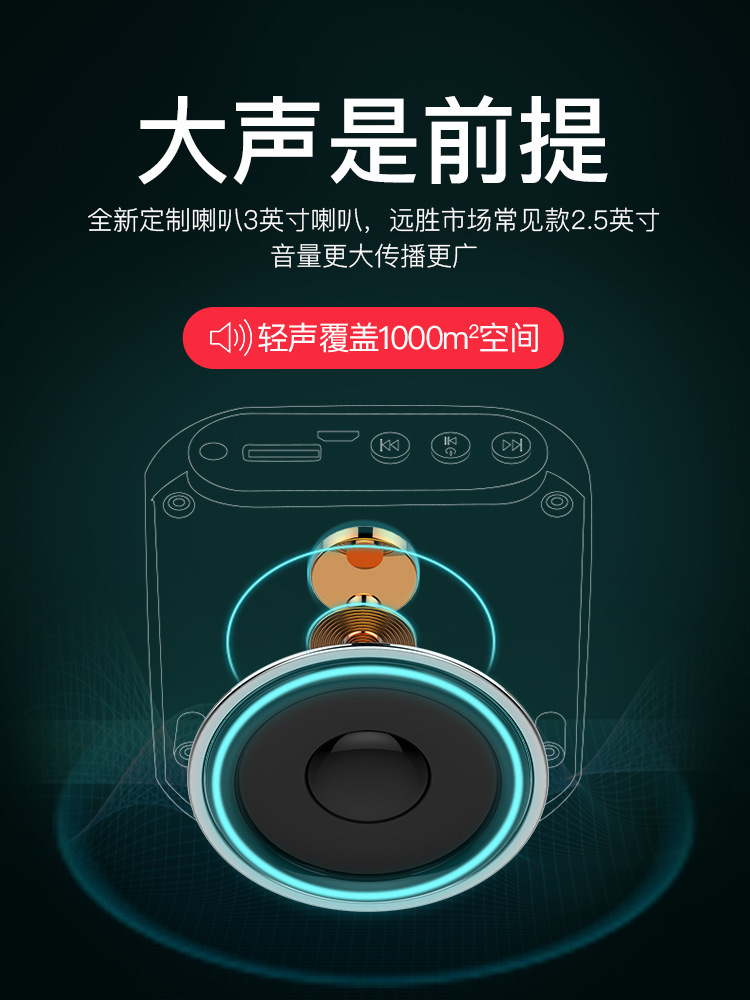 严选【智能调频防噪小蜜蜂扩音器蓝牙版黑色】诺必行S17老师导游地摊叫卖大喇叭便携式播放器