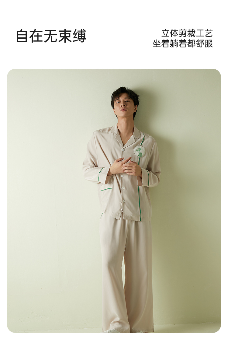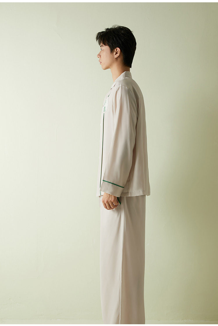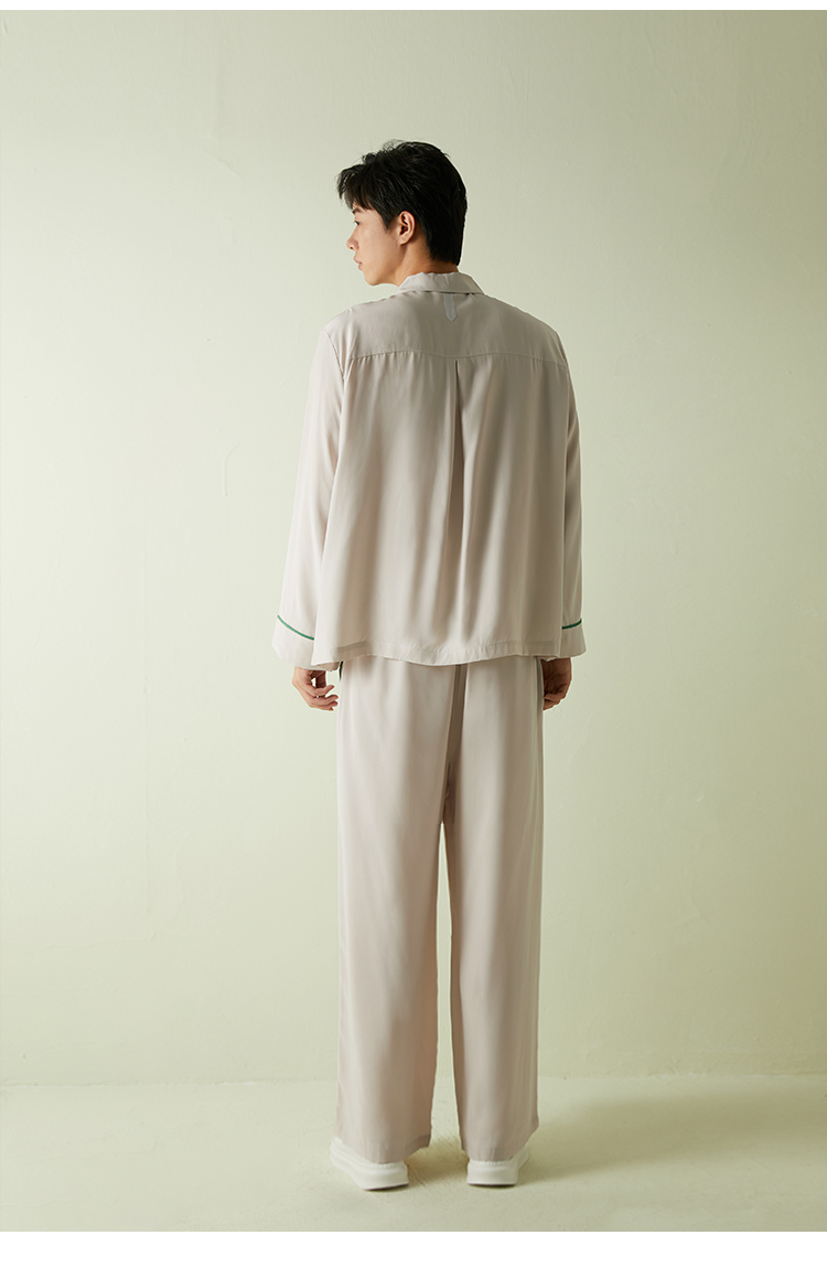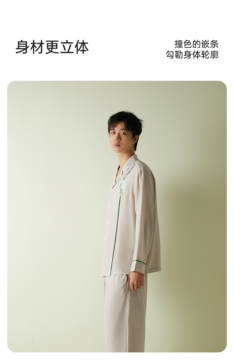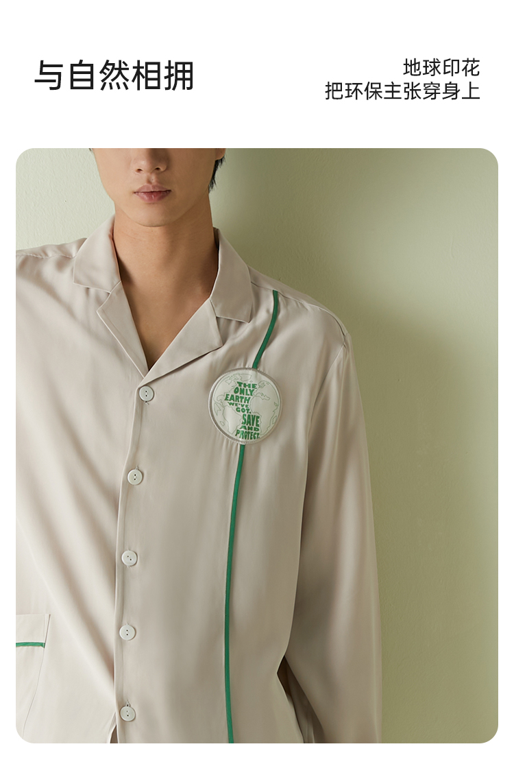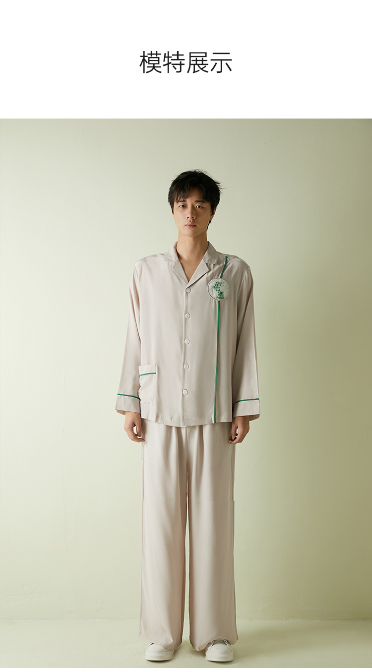 SANGLUO地球日真丝睡衣套装男士撞色100%桑蚕丝柔滑可外穿家居服