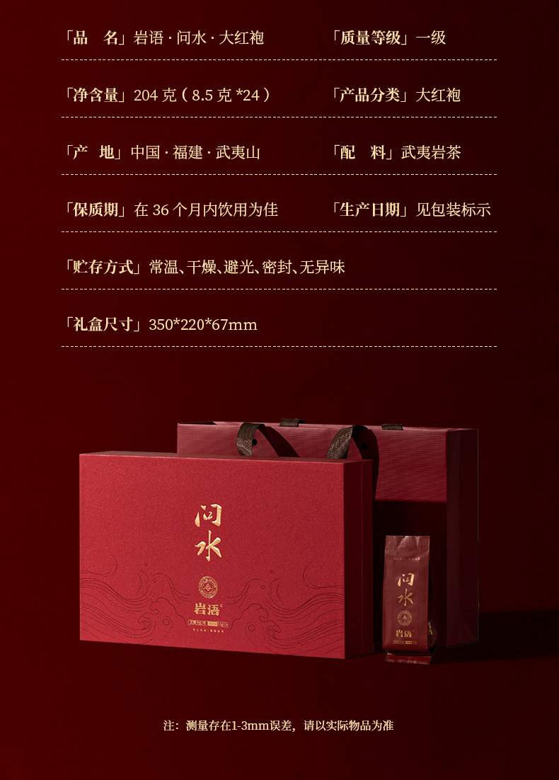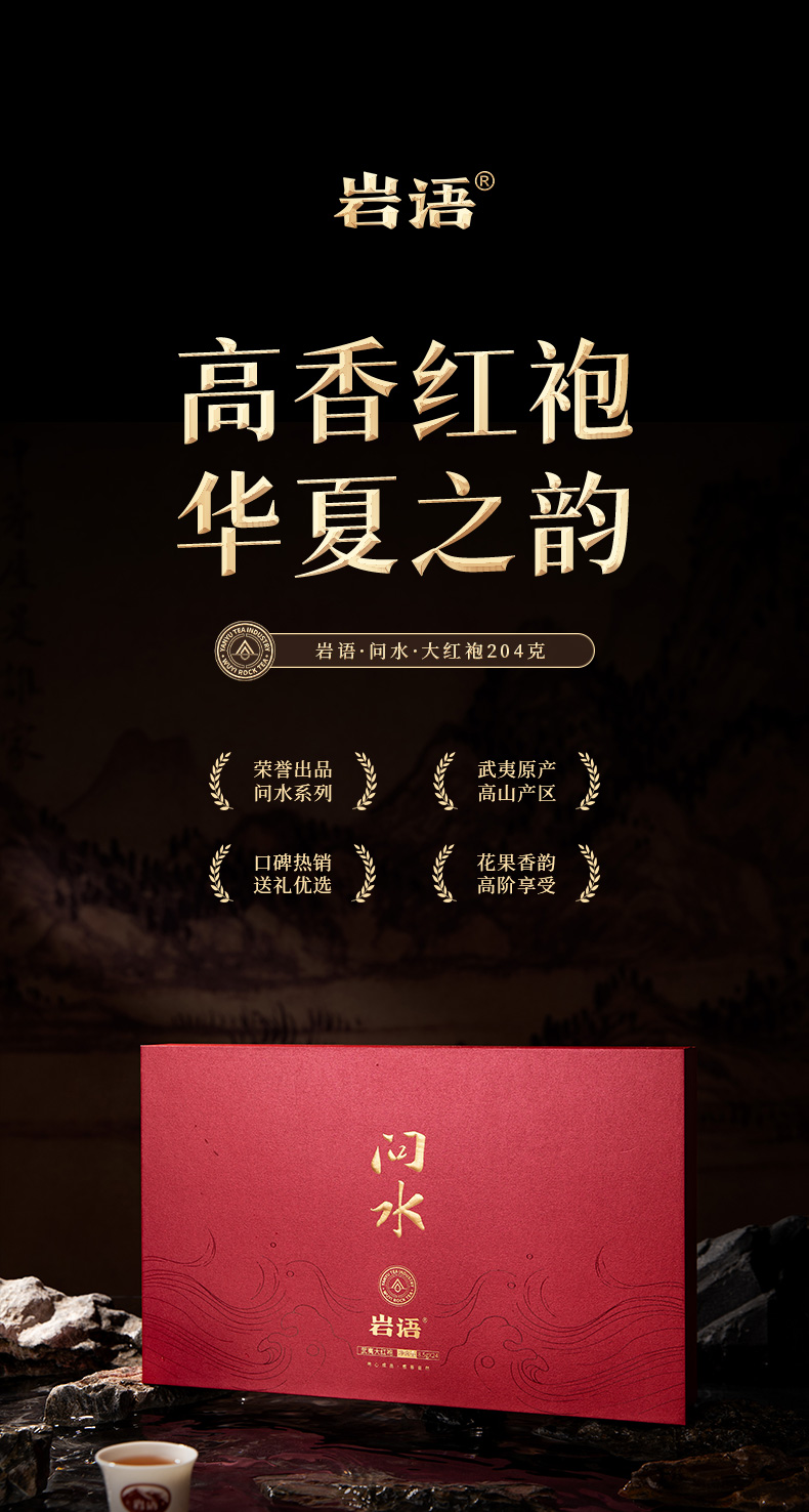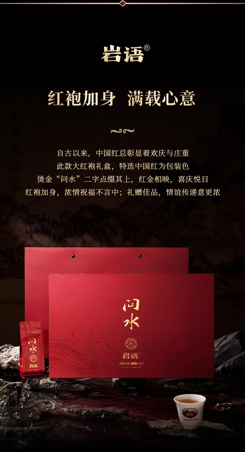【问水】岩语 问水大红袍礼盒装 特级武夷岩茶茶叶中足火乌龙茶204g