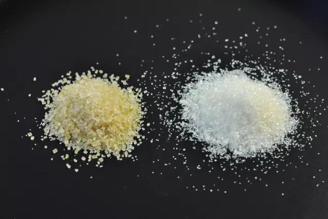 大家仔细观察会发现,两款的颜色会有差别,一款的颜色偏深,会微微发黄,而另一款颜色偏浅,但不是纯白。主要是因为物理澄清没有化学澄清那么彻底,总会保留原糖的一部分颜色和营养,这样的砂糖才更加健康。