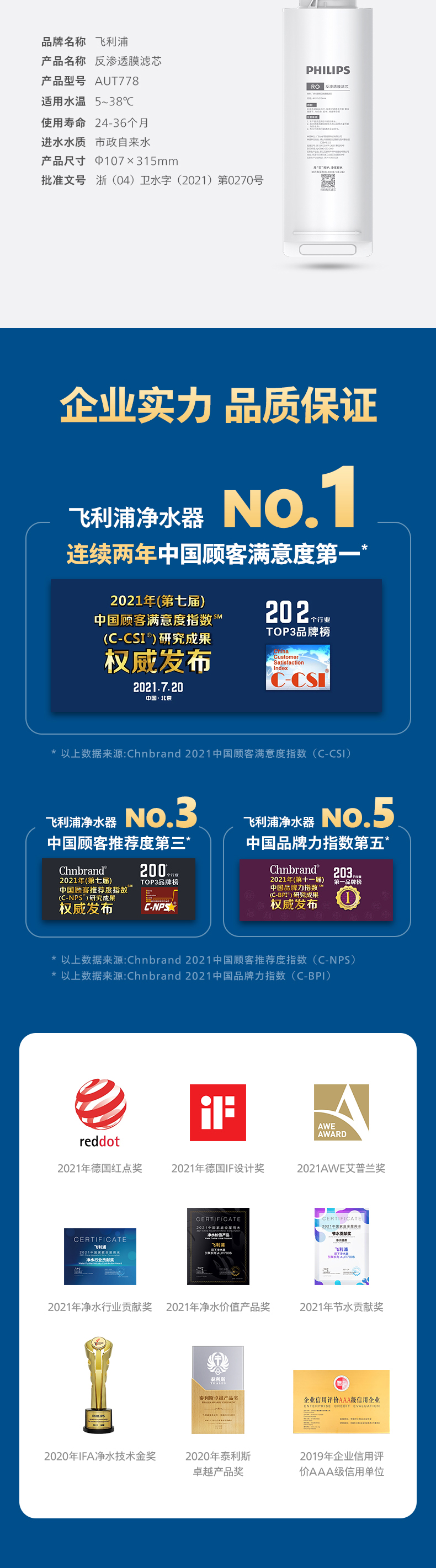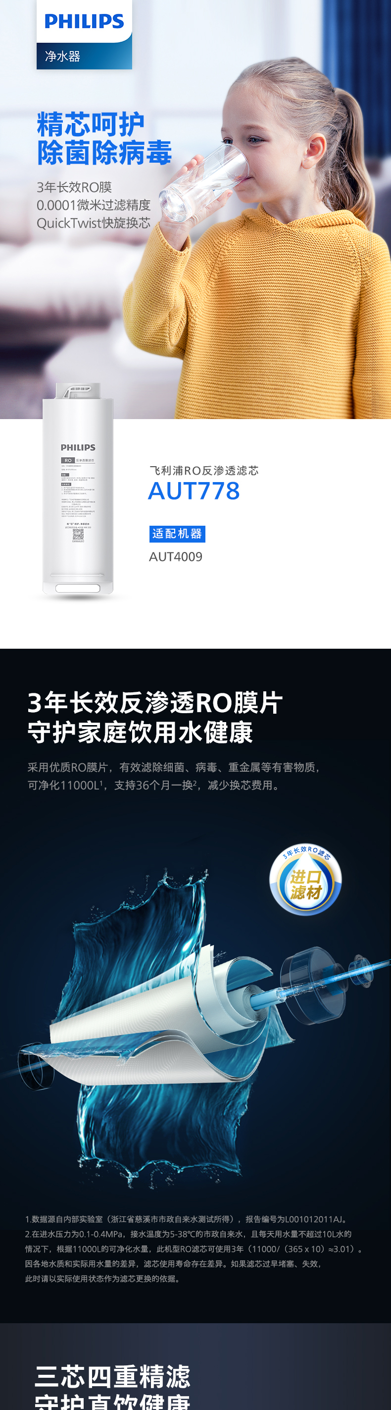 飞利浦(PHILIPS)厨下净水器滤芯AUT778(RO) 适用:AUT4009