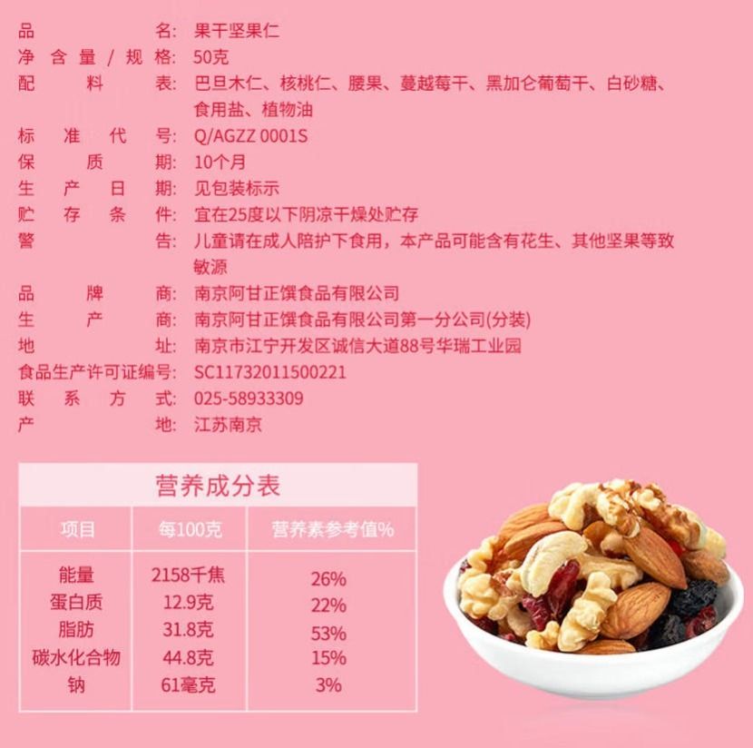 阿甘正馔甘小美果干坚果仁50g