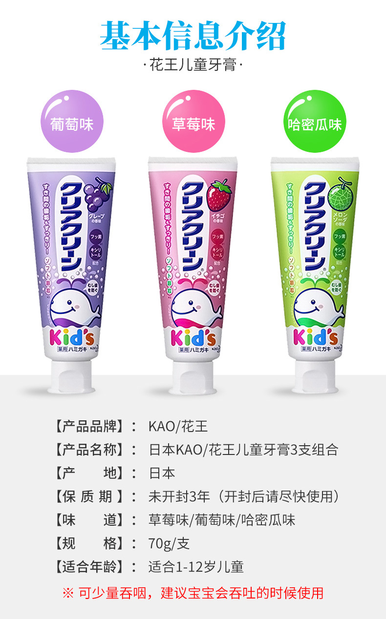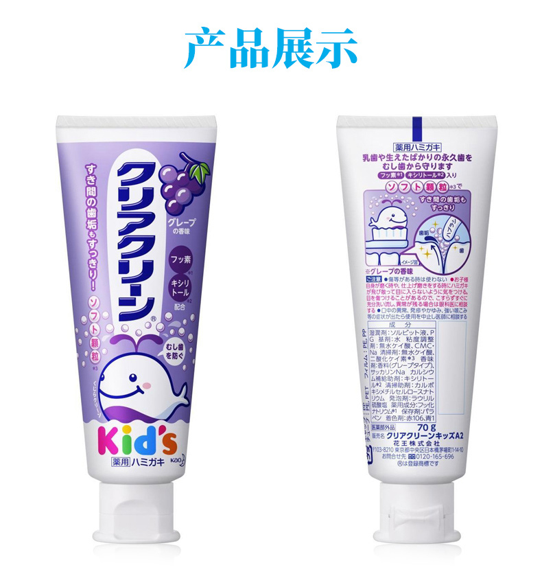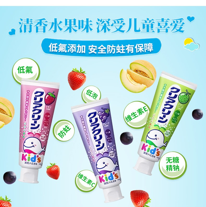 【一般贸易】日本花王(Kao)儿童木糖醇低氟防蛀防龋齿牙膏70g(适合1-12岁儿童)