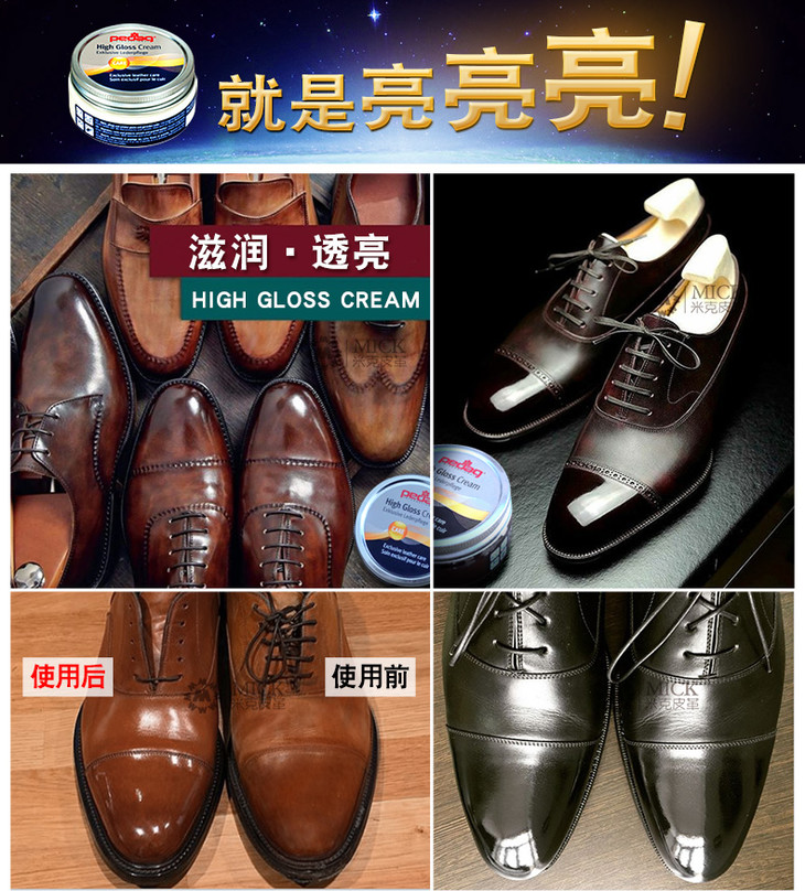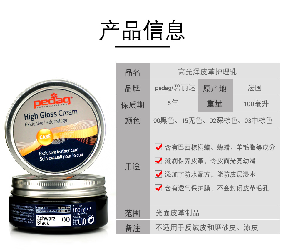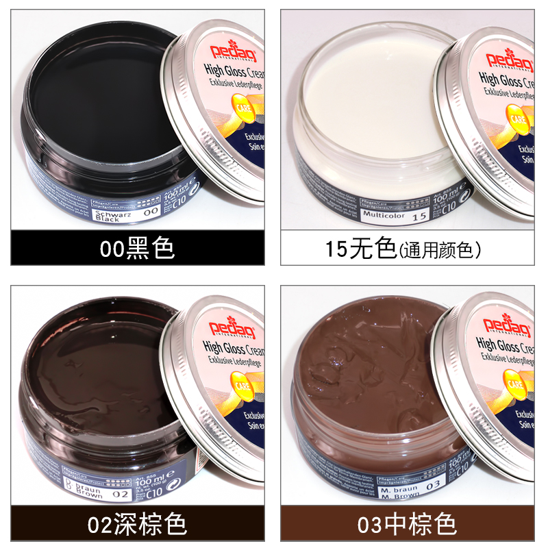德国pedag高光鞋油四合一高光皮革保养油豆腐状态皮革鞋蜡玻璃油855