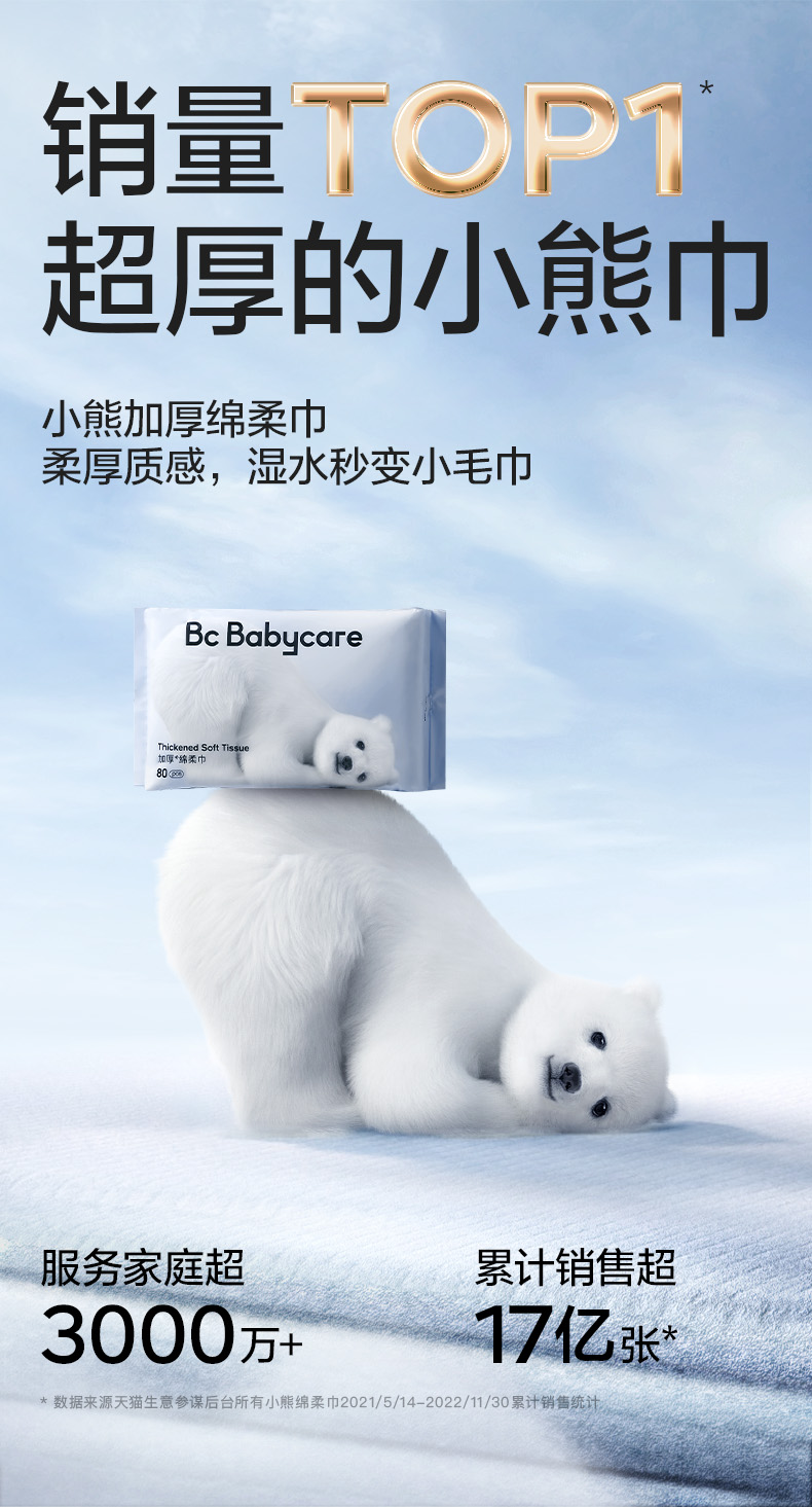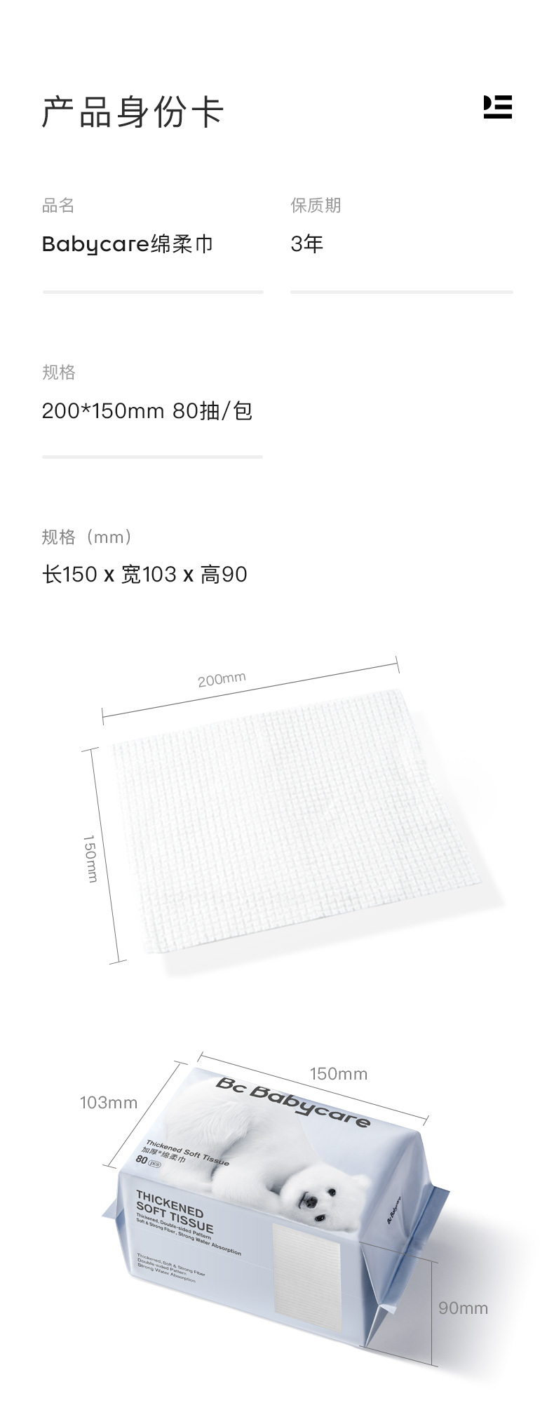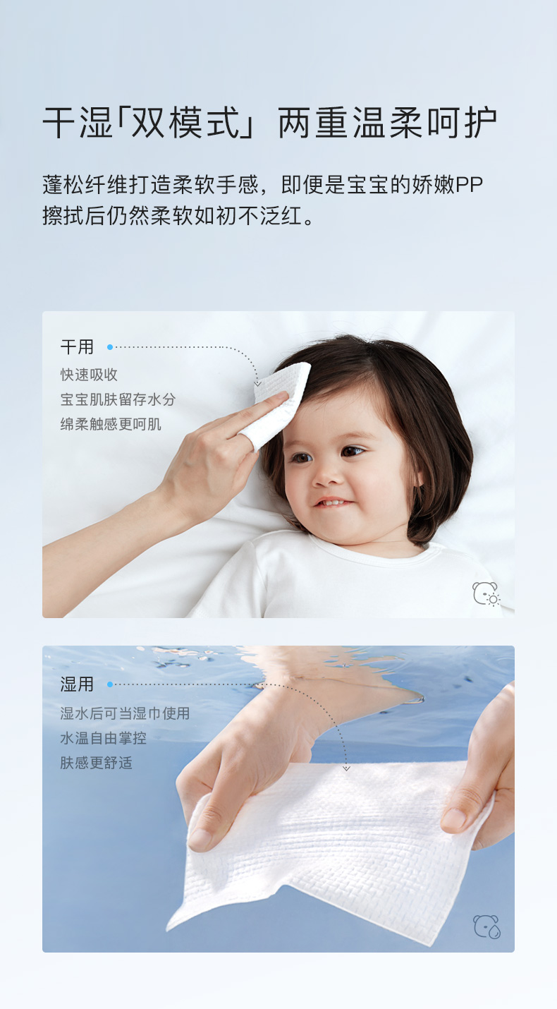 babycare柔巾婴儿干湿两用新生宝宝专用小熊巾抽取加厚80抽4包