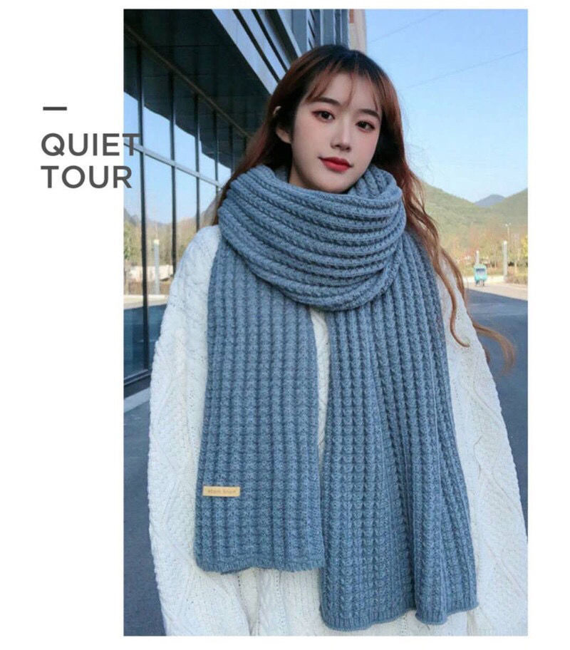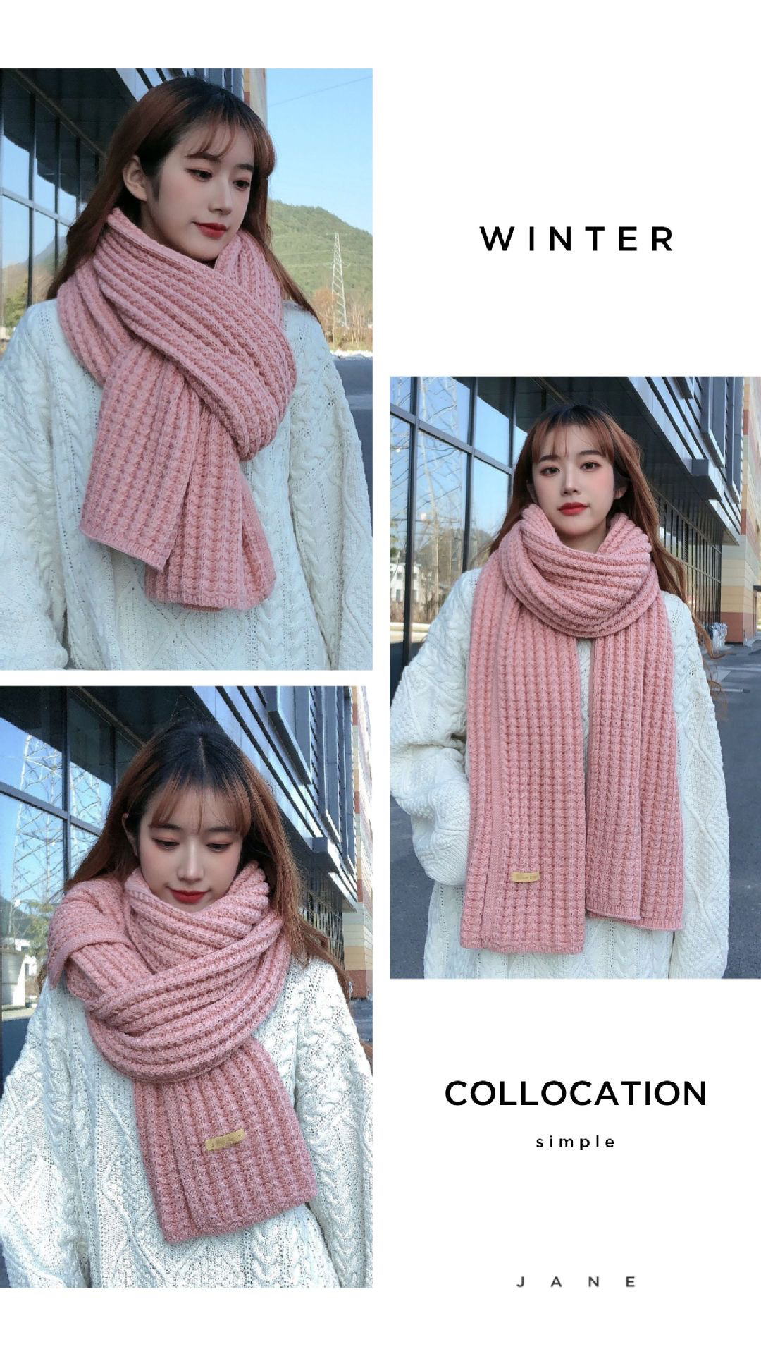 【暖糯显白!韩版加厚百搭围巾】慵懒感十足简约针织围脖,质感软糯舒适围巾,暖和护脖围巾日韩甜美百搭毛线围脖QQ