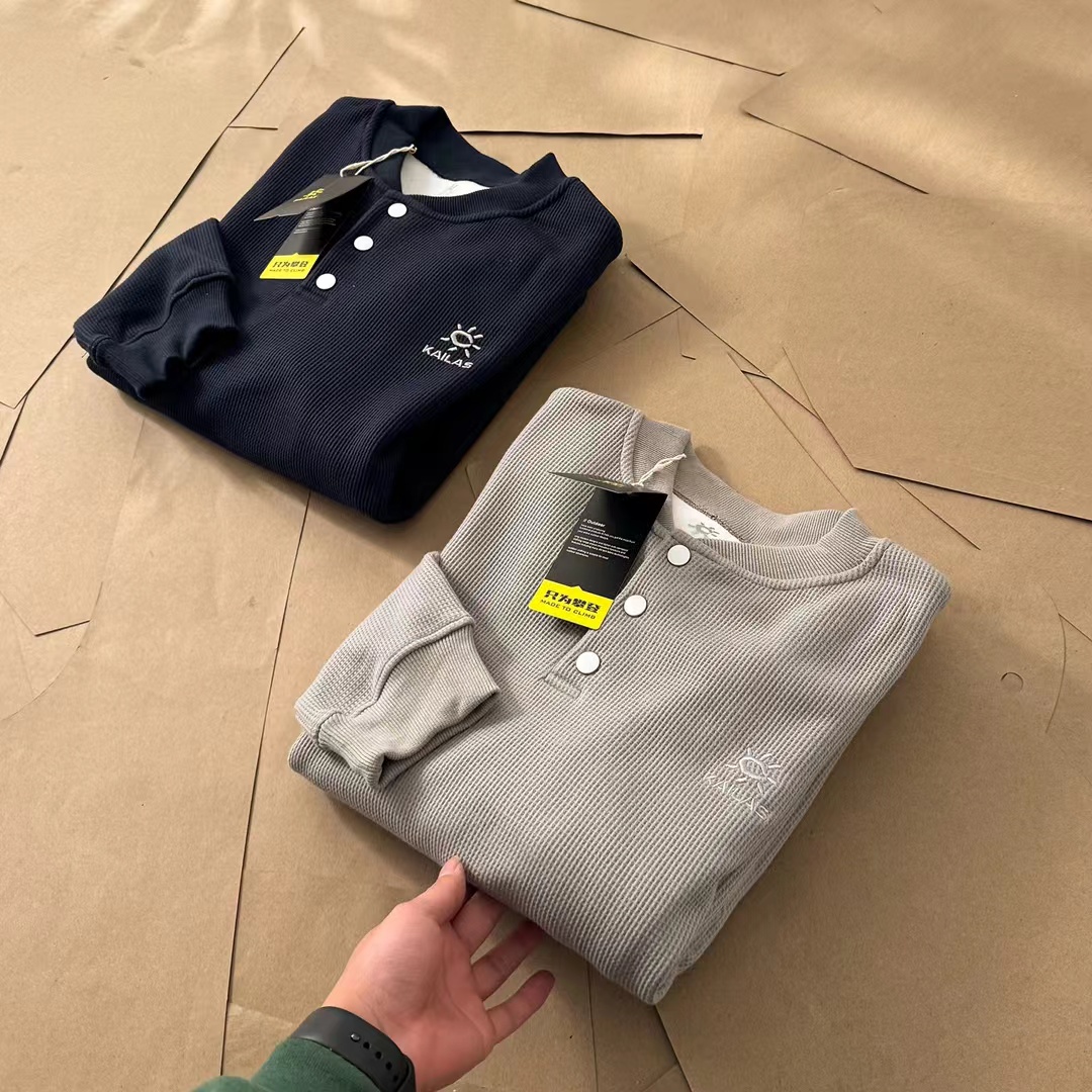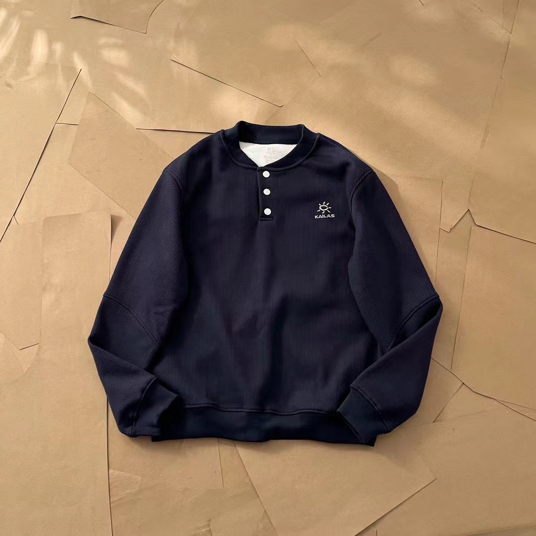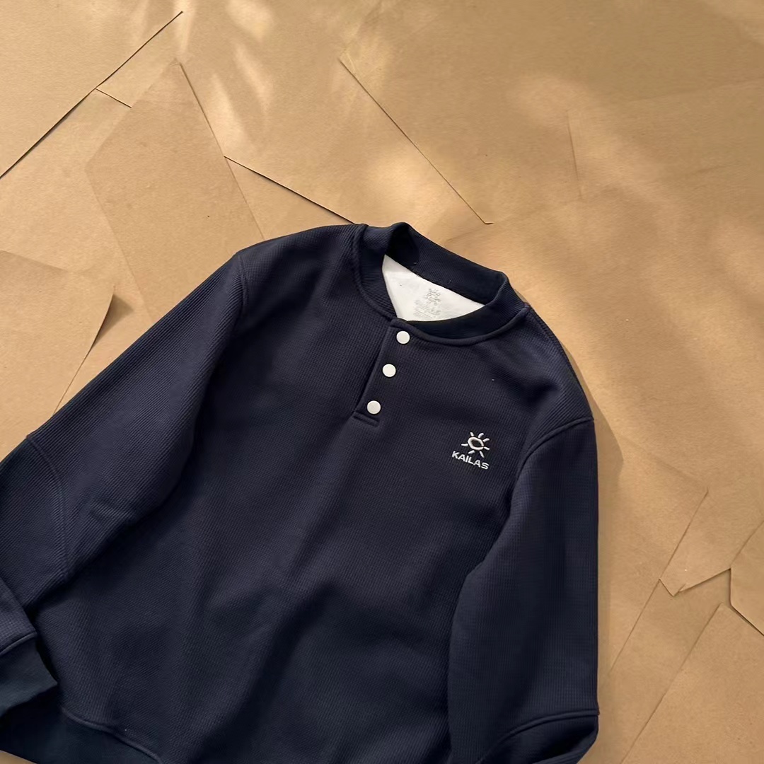 新品小立领半门巾华夫格加绒长袖打底衫卫衣长袖情侣T恤,简约大气。面料采用华夫格针织工艺,透气舒适,手感柔软,做工细腻。防风半门襟纽扣立领轻量保暖抓绒衫,这款运动衫不仅集时尚与功能于一身,更以其卓yue的性能成为户外运动的理想伴侣,ji致轻盈,高效保暖,黑科技运动户外面料,这种材料不仅具有出色的保暖性能,还兼具极高的柔韧性。其轻质特性使得运动衫在提供温暖的同时,不会给身体带来额外的负担,非常适合长时间户外活动。新款加绒长袖小立领设计,非常有味道!胸前标志性刺绣logo线条饱满摸起来带有层次感,十分jing致!双肩下方做了拼接以及双针压线,羔端设计!高透气性,快干舒适,这种材料的高透气性和快干特性,让这款运动衫在户外环境中表现出色。内部独特的“华夫格”结构设计,不仅增加了隔热性能,还能将汗水迅速吸至材料顶部,加快干燥速度,保持身体干爽舒适。半门襟纽扣,灵活穿脱,使得这款运动衫更容易穿脱,同时也便于在温暖的日子里快速通风,调节体温。立领设计则有效防止冷风侵袭,保护颈部不受寒冷侵。适合日常休闲或运动场合,面料柔软舒适,穿着体验ji佳。