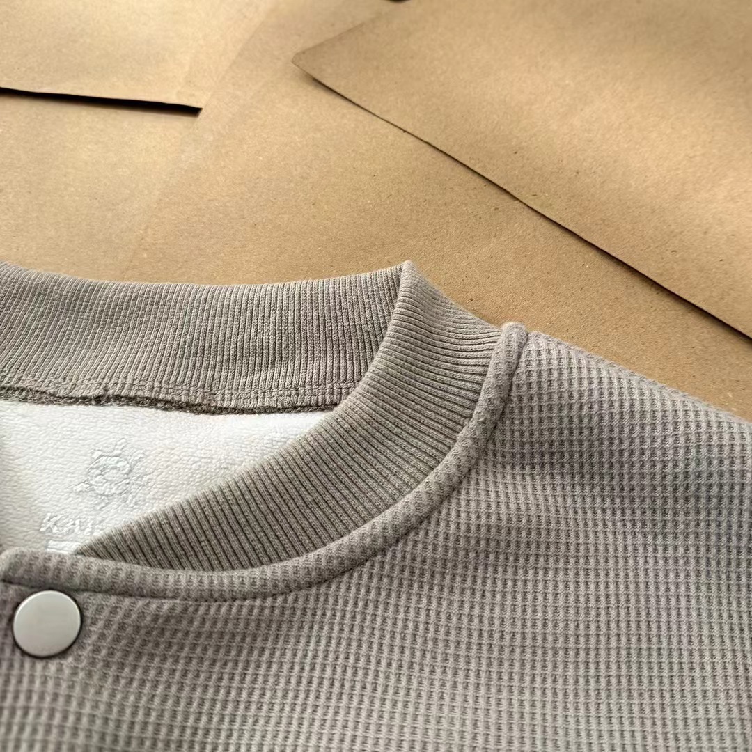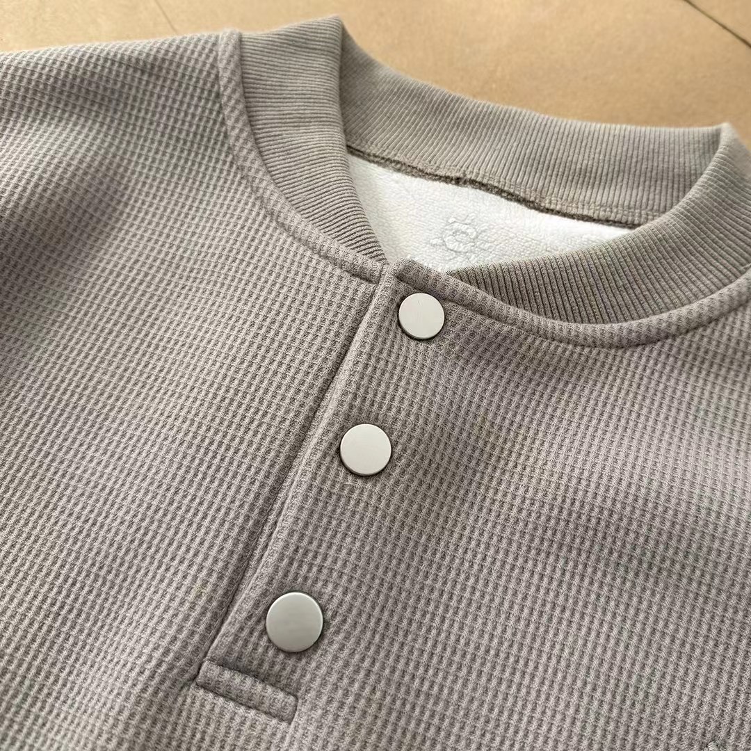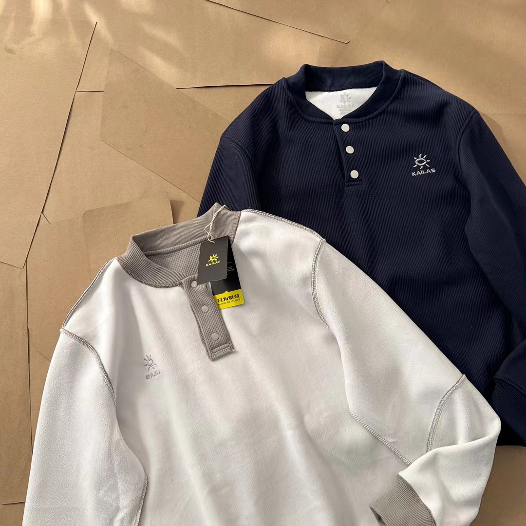 新品小立领半门巾华夫格加绒长袖打底衫卫衣长袖情侣T恤,简约大气。面料采用华夫格针织工艺,透气舒适,手感柔软,做工细腻。防风半门襟纽扣立领轻量保暖抓绒衫,这款运动衫不仅集时尚与功能于一身,更以其卓yue的性能成为户外运动的理想伴侣,ji致轻盈,高效保暖,黑科技运动户外面料,这种材料不仅具有出色的保暖性能,还兼具极高的柔韧性。其轻质特性使得运动衫在提供温暖的同时,不会给身体带来额外的负担,非常适合长时间户外活动。新款加绒长袖小立领设计,非常有味道!胸前标志性刺绣logo线条饱满摸起来带有层次感,十分jing致!双肩下方做了拼接以及双针压线,羔端设计!高透气性,快干舒适,这种材料的高透气性和快干特性,让这款运动衫在户外环境中表现出色。内部独特的“华夫格”结构设计,不仅增加了隔热性能,还能将汗水迅速吸至材料顶部,加快干燥速度,保持身体干爽舒适。半门襟纽扣,灵活穿脱,使得这款运动衫更容易穿脱,同时也便于在温暖的日子里快速通风,调节体温。立领设计则有效防止冷风侵袭,保护颈部不受寒冷侵。适合日常休闲或运动场合,面料柔软舒适,穿着体验ji佳。