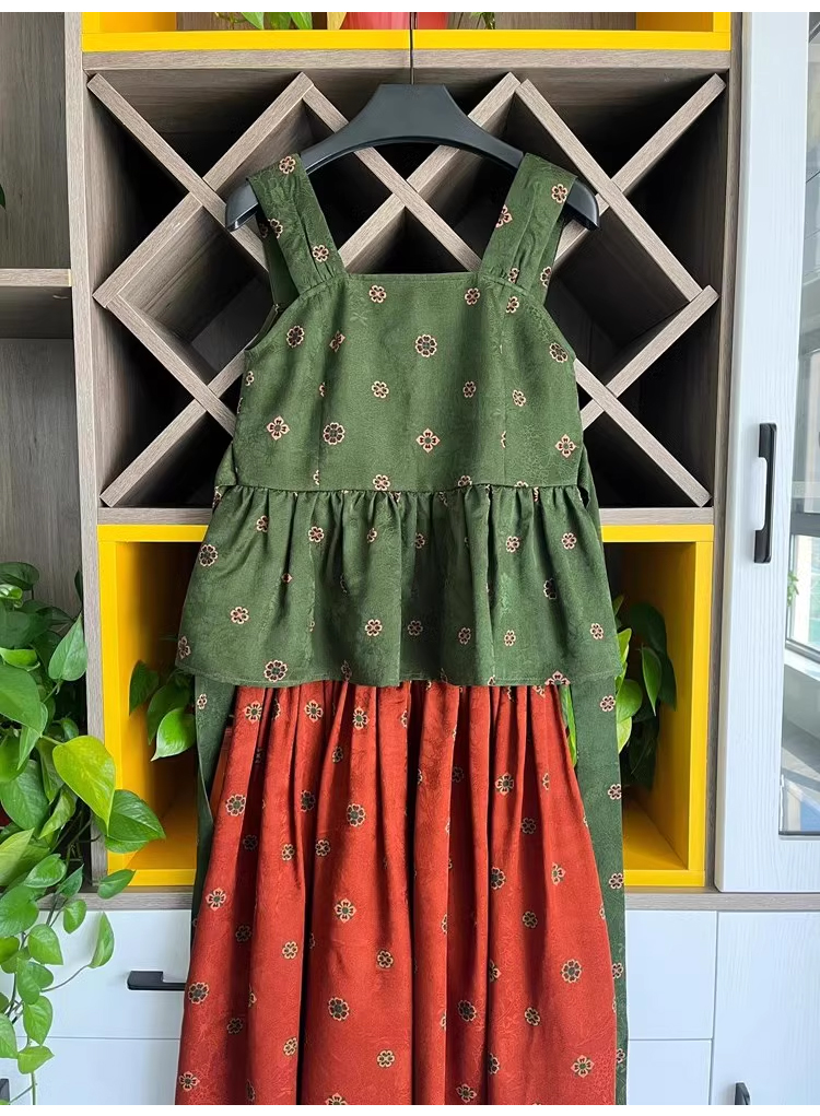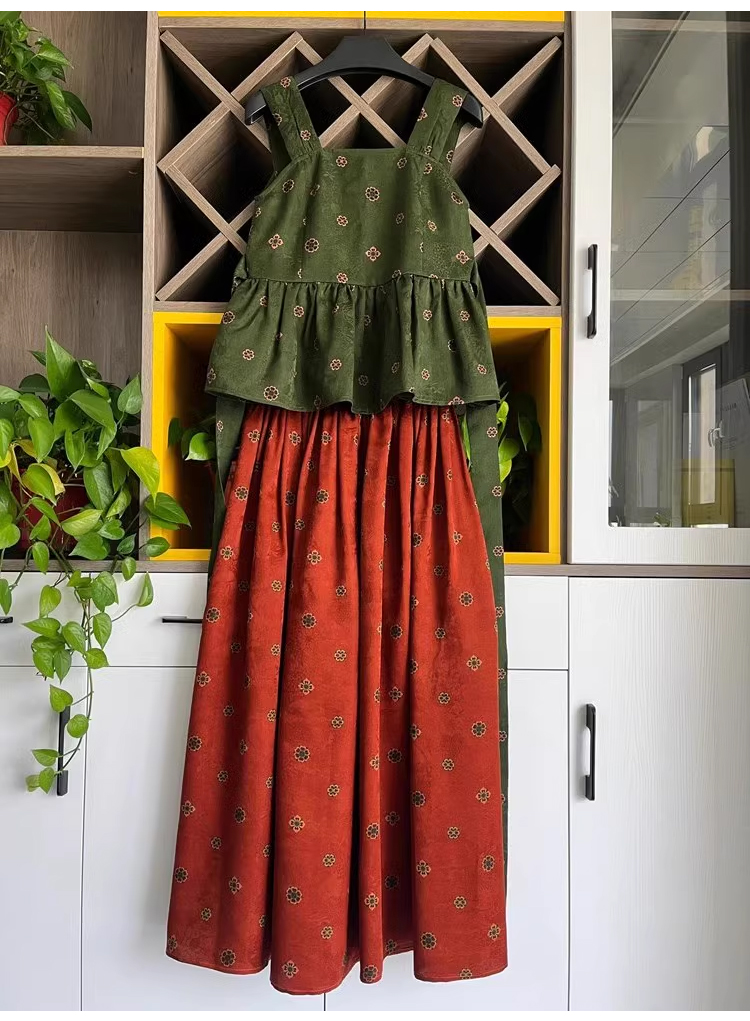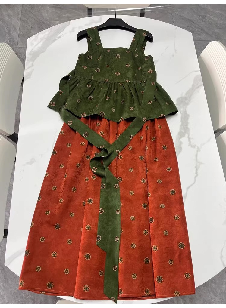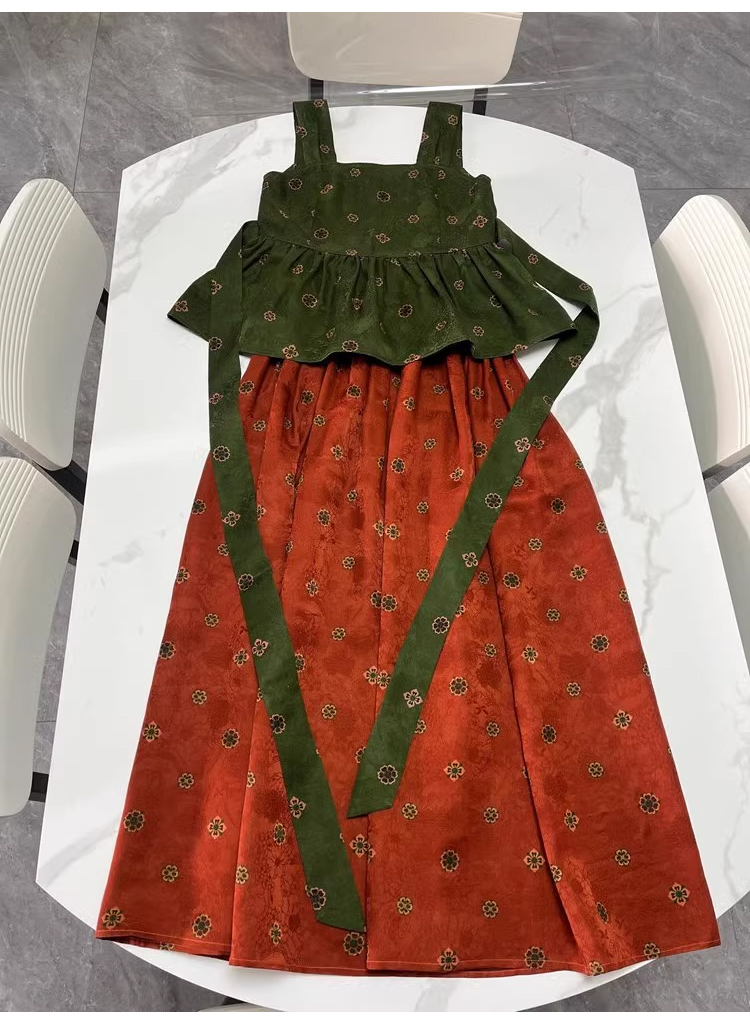 裁缝学苑AQ291夏季茶歇法式飘带收腰吊带上衣百褶半身裙套装纸样版型