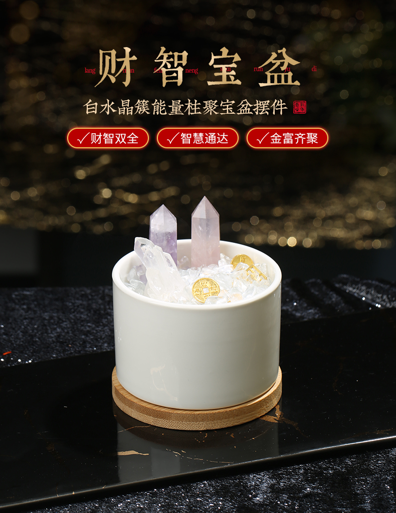 【祈愿吉品】「财智宝盆」2026马年白水晶簇能量柱