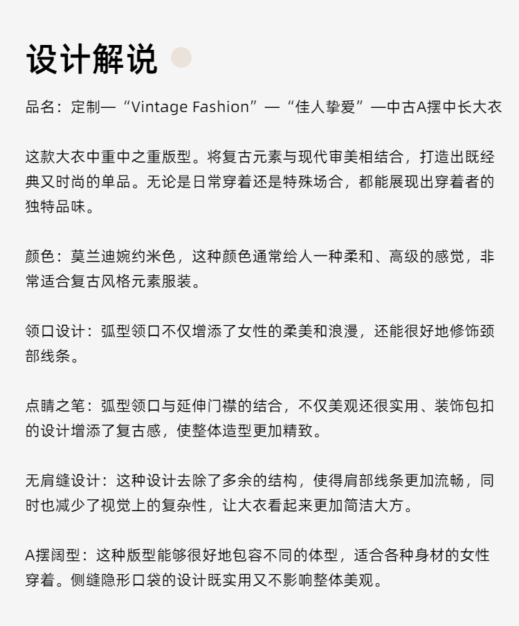 E—定制—“Vintage Fashion”—佳人挚爱—中古A摆浅驼色大衣 2406007