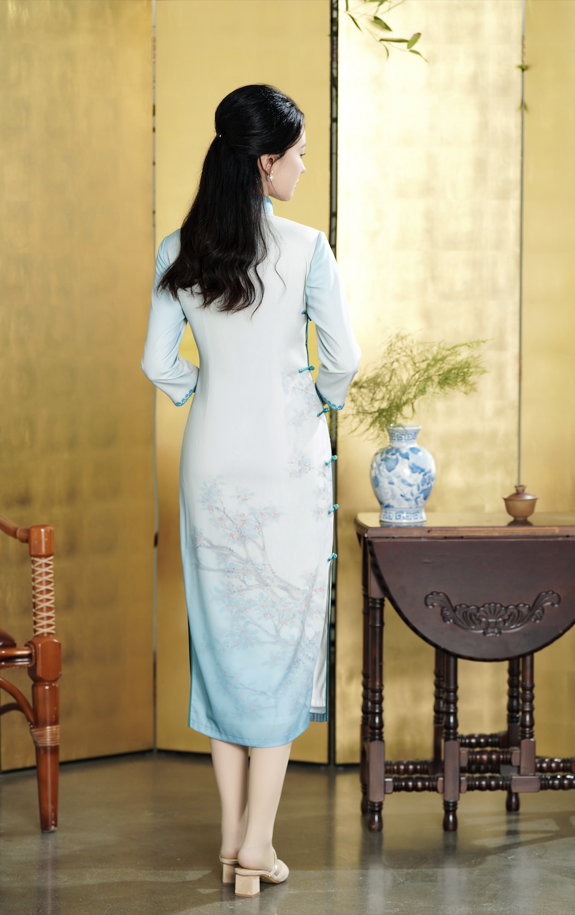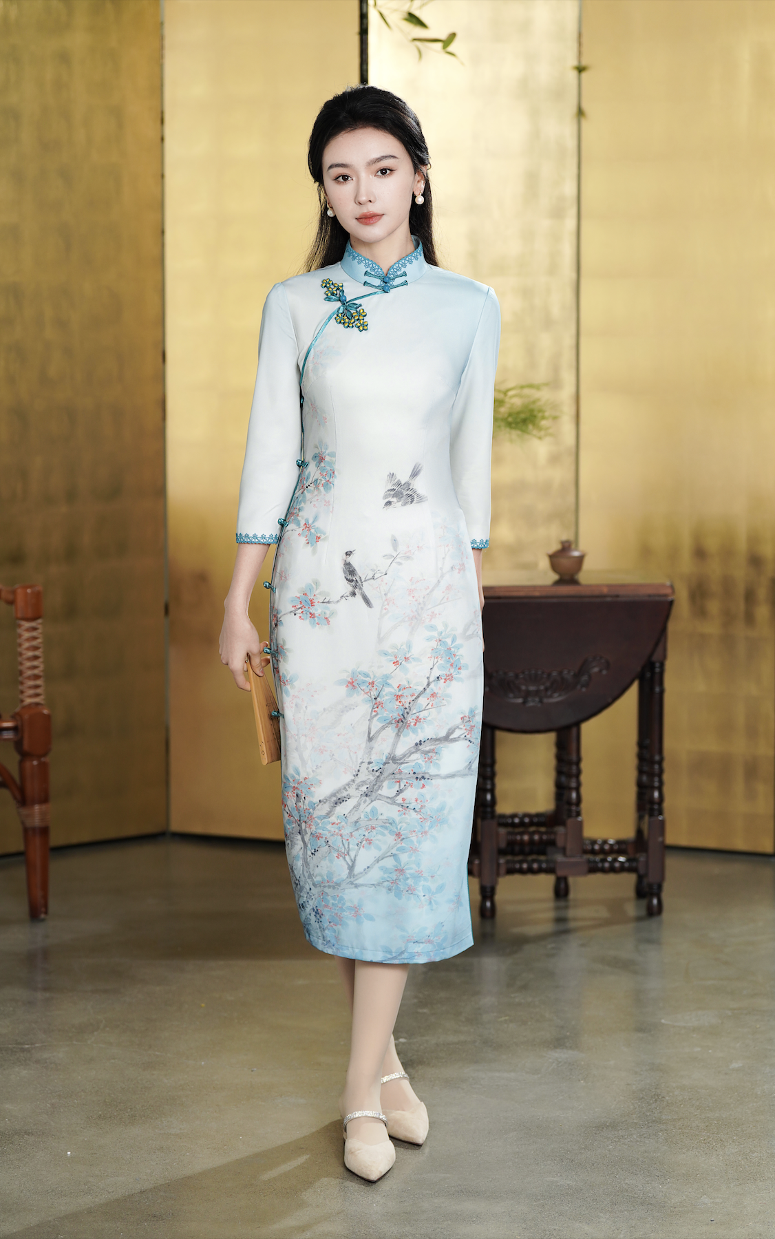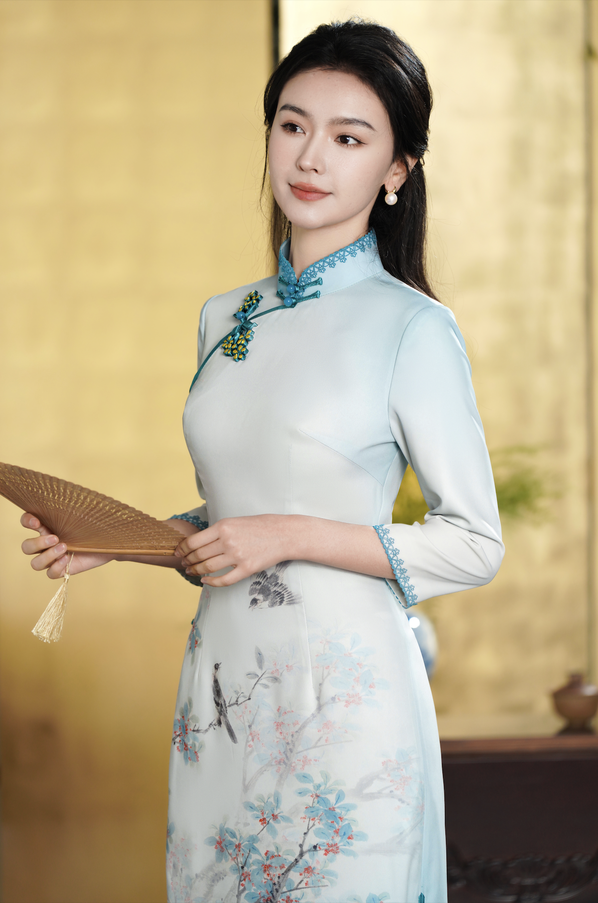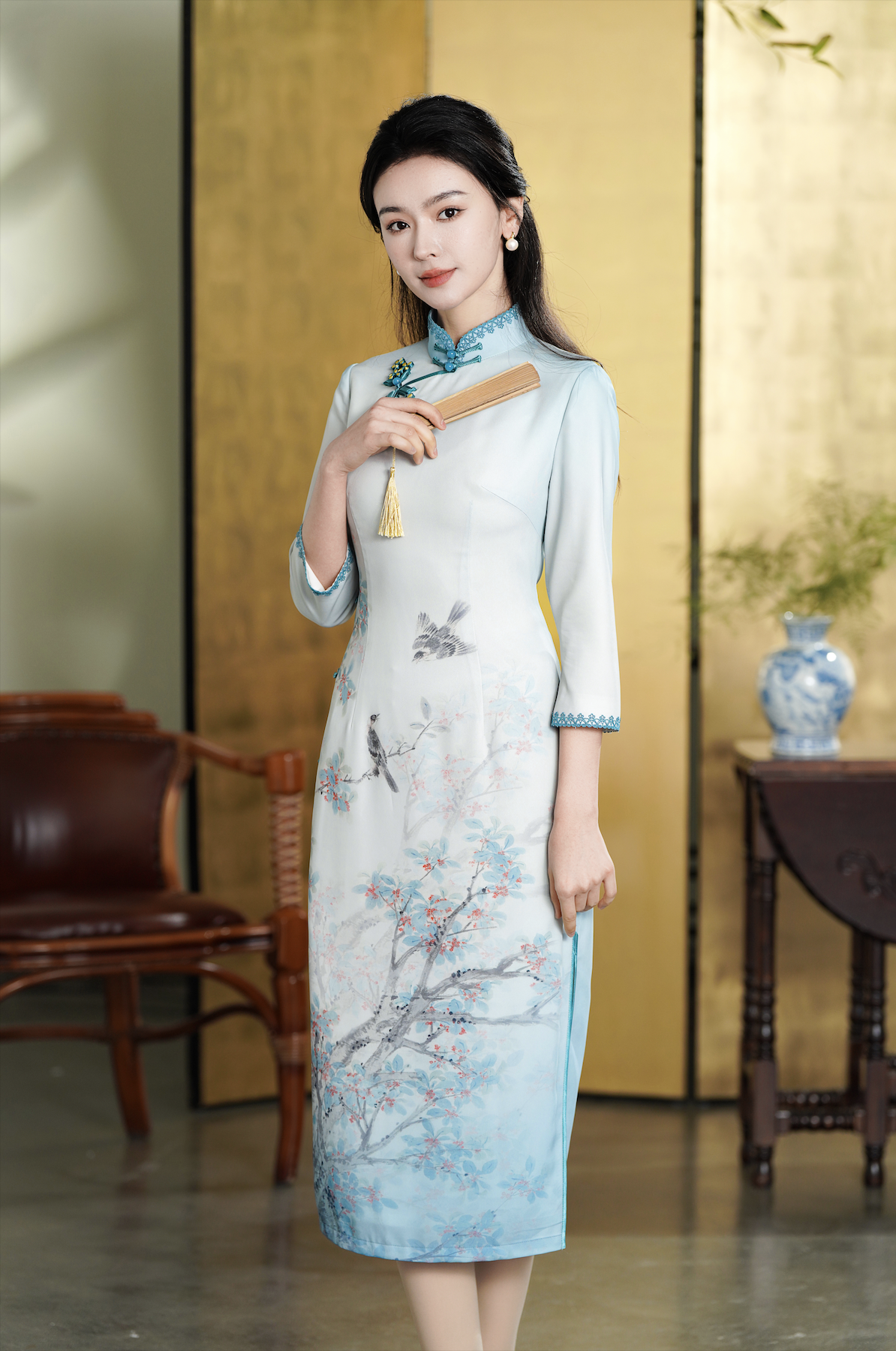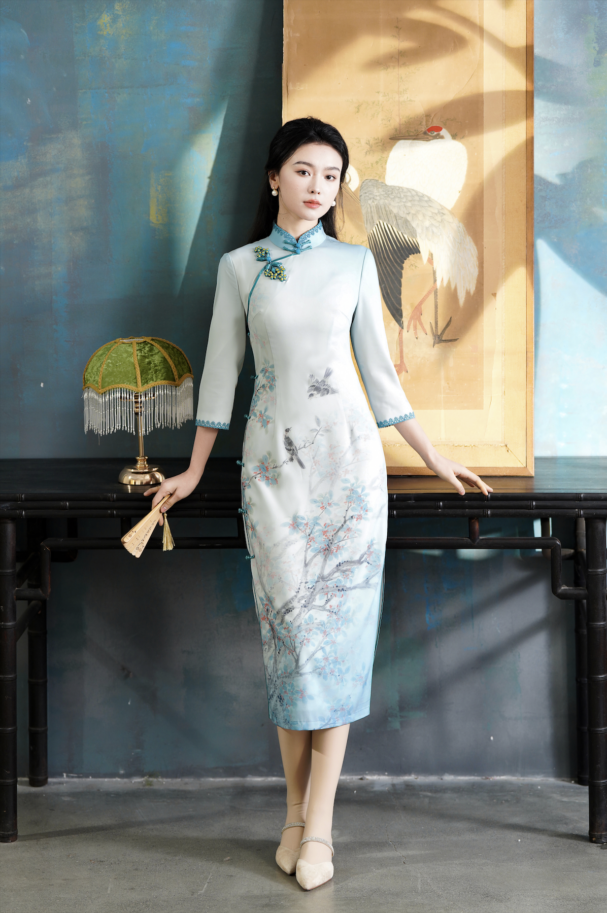 🐟「梦烟雨」适合春秋和初夏,这是一件文艺感十足的传统旗袍,比较适于一些书卷气的场合。读书会、座谈会或是参加旗袍派对等都是很好的选择,独特、不易撞款。