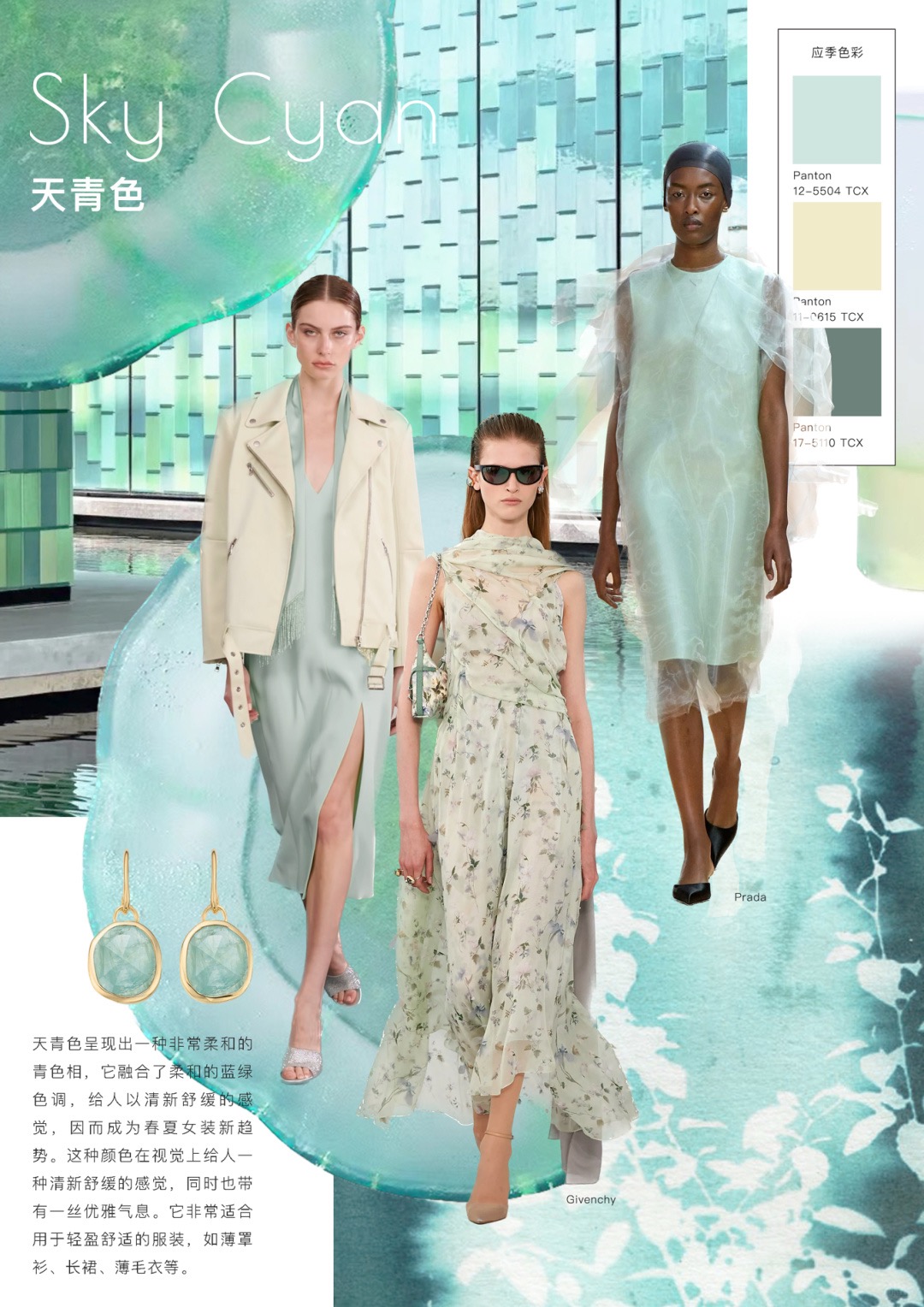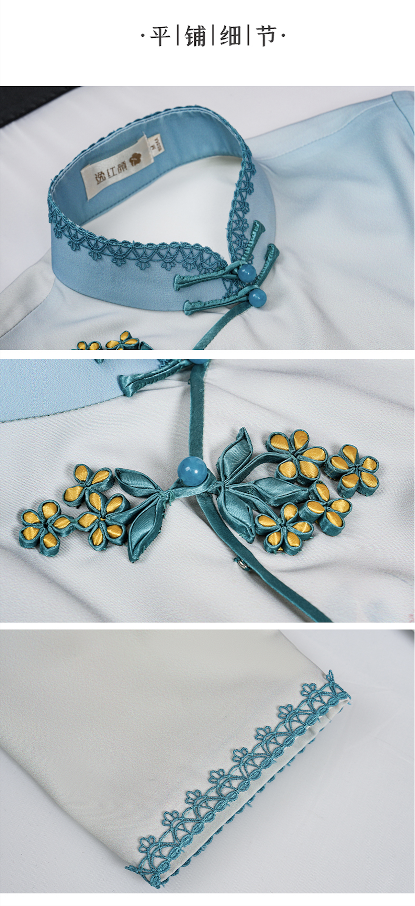 2.领口、袖口均有秀气的天青色压花边,精致优雅!