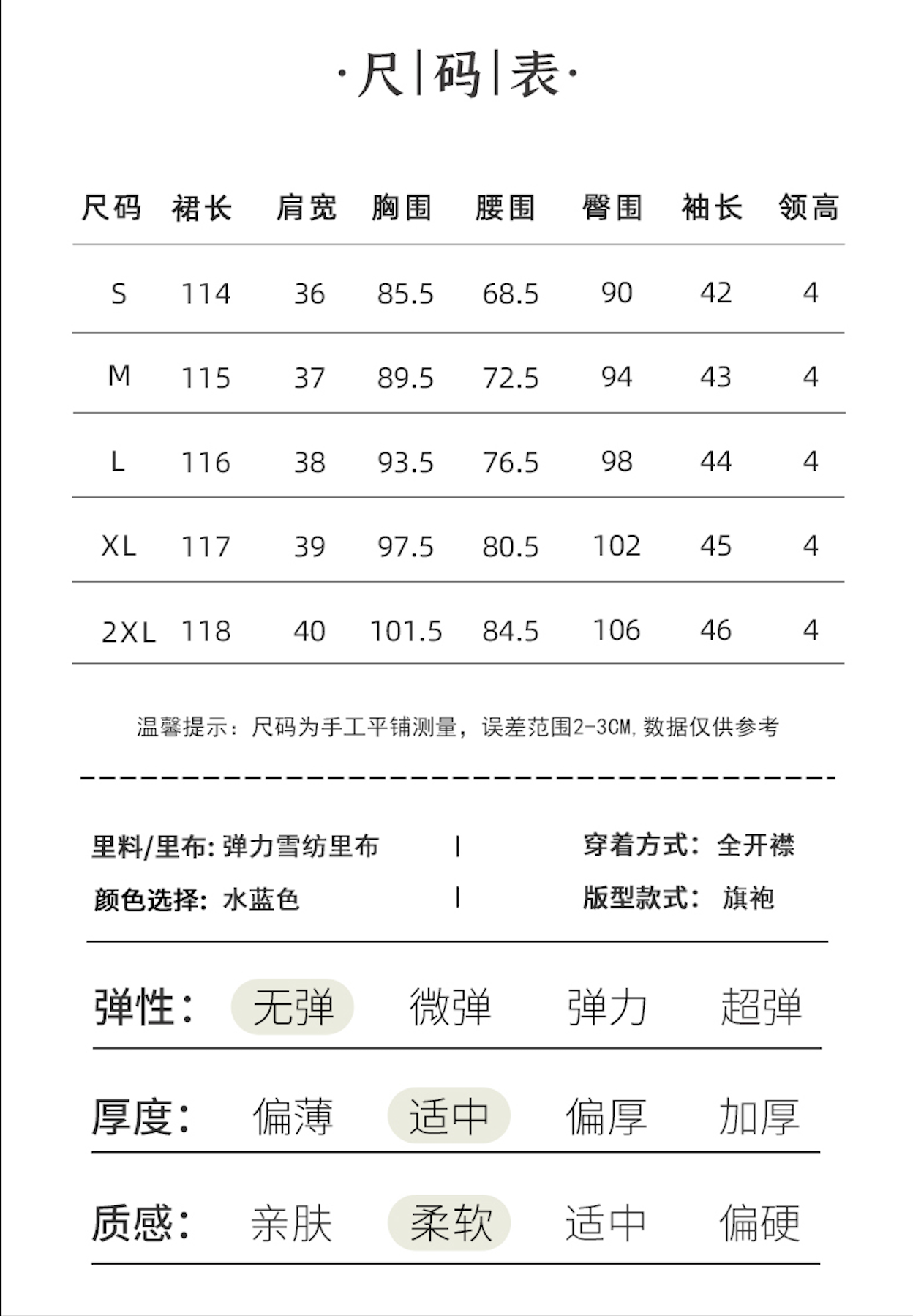 7.修身S型旗袍,我们放松量进去的,所以正常活动是舒适的~肚子上有花型,可以很好的遮住小肚子,又美又瘦又雅~~