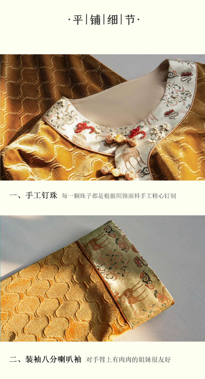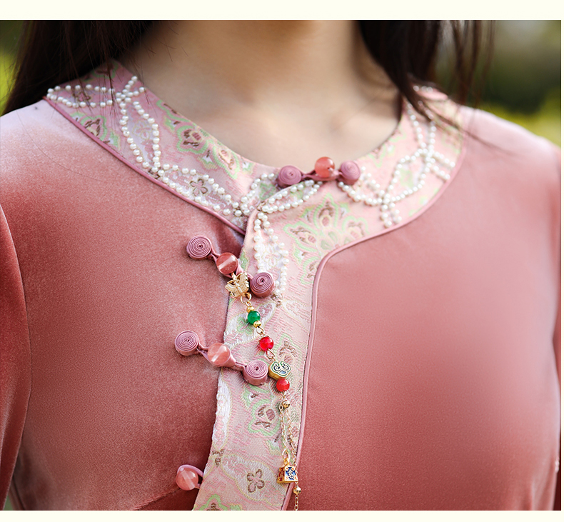赠送压襟挂件:随旗袍赠送的压襟挂件,是春日里的一抹灵动点缀。