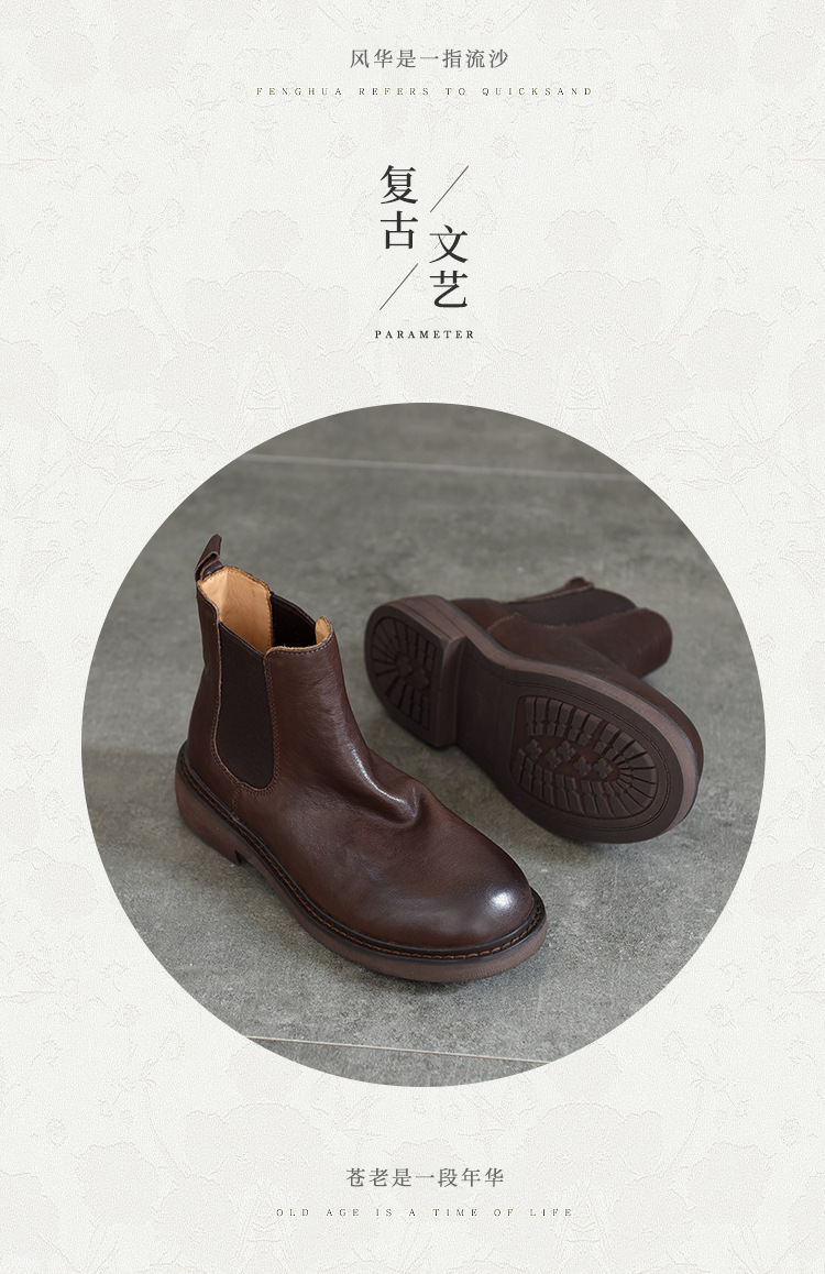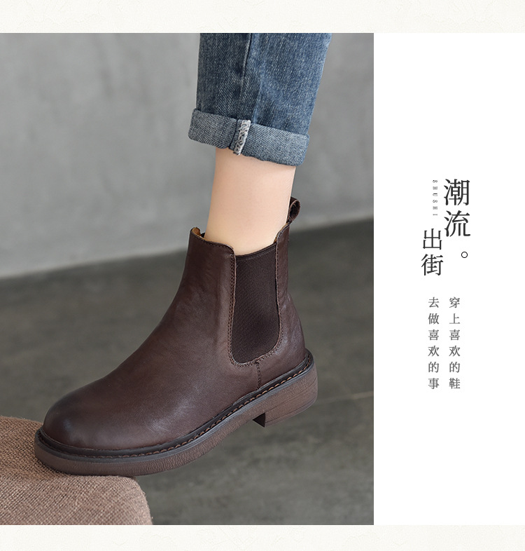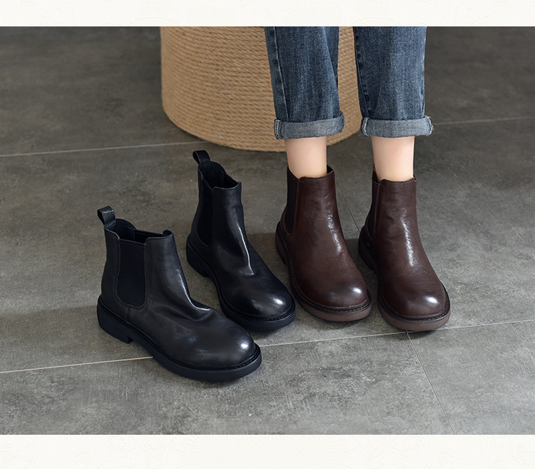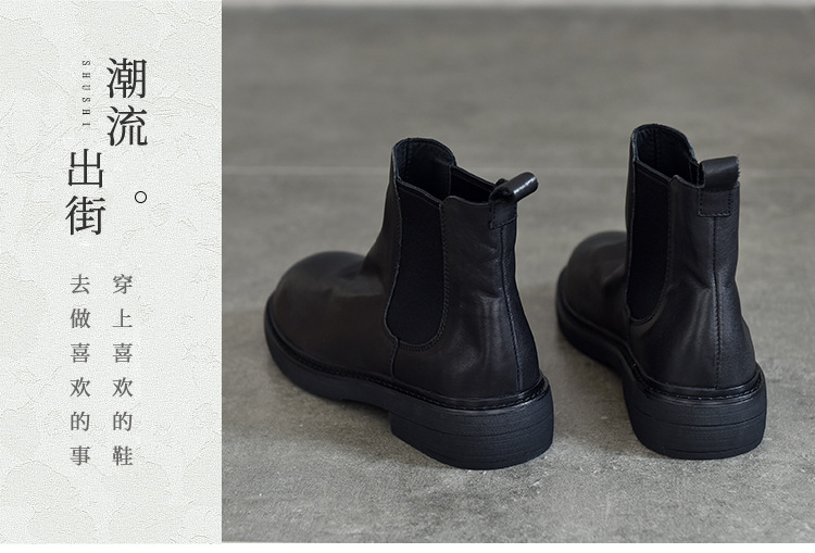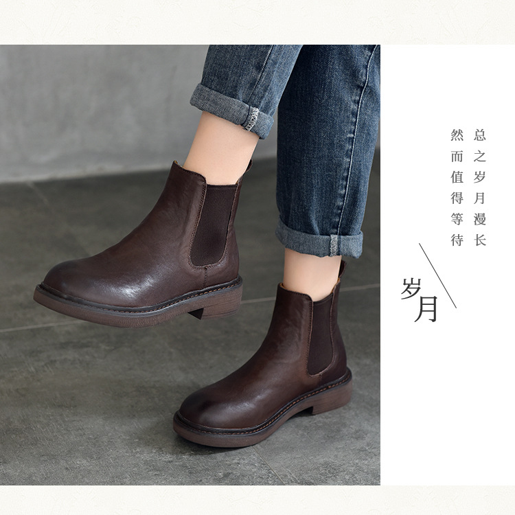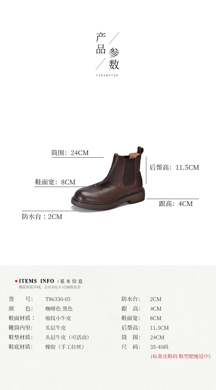 TN T86330-05高品质牛皮短靴真皮切尔西靴复古