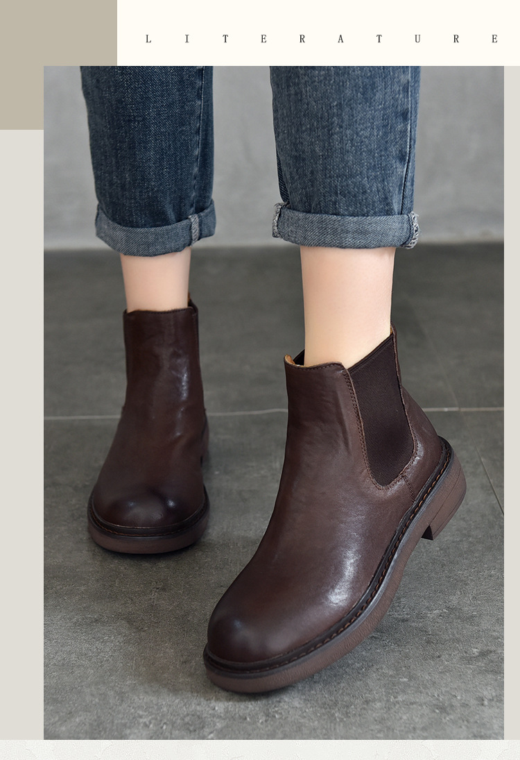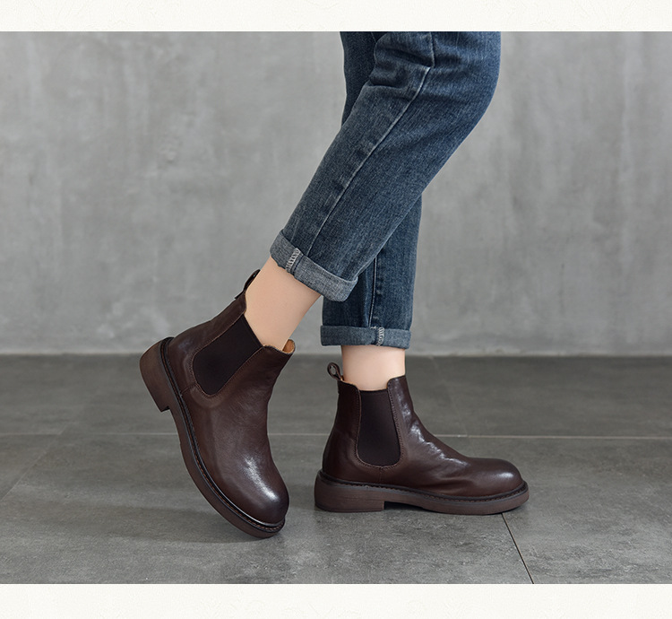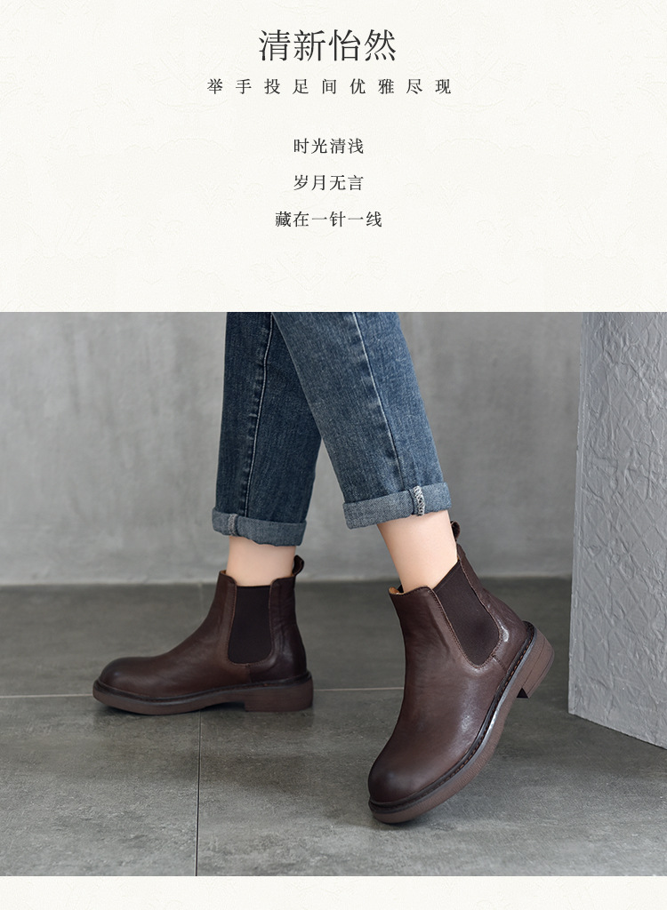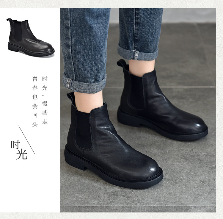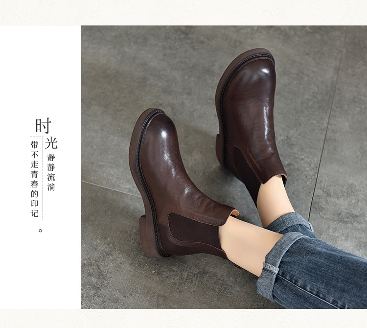 TN T86330-05高品质牛皮短靴真皮切尔西靴复古