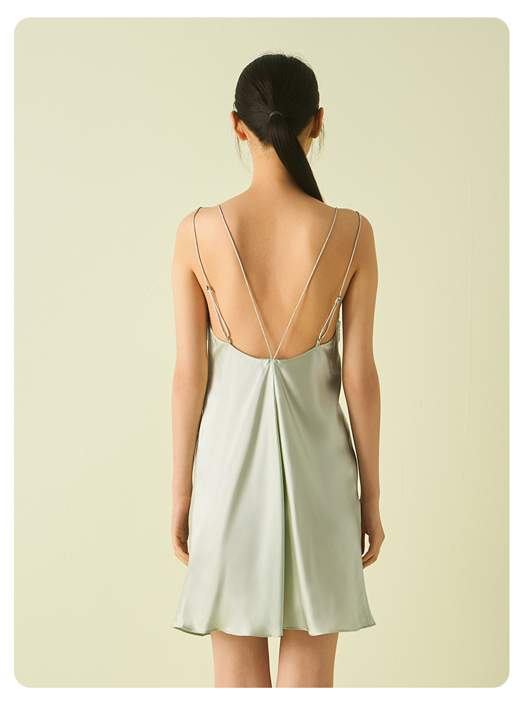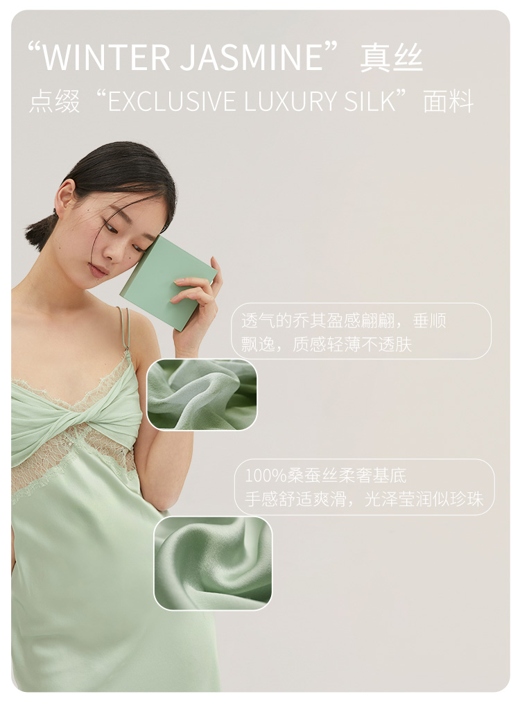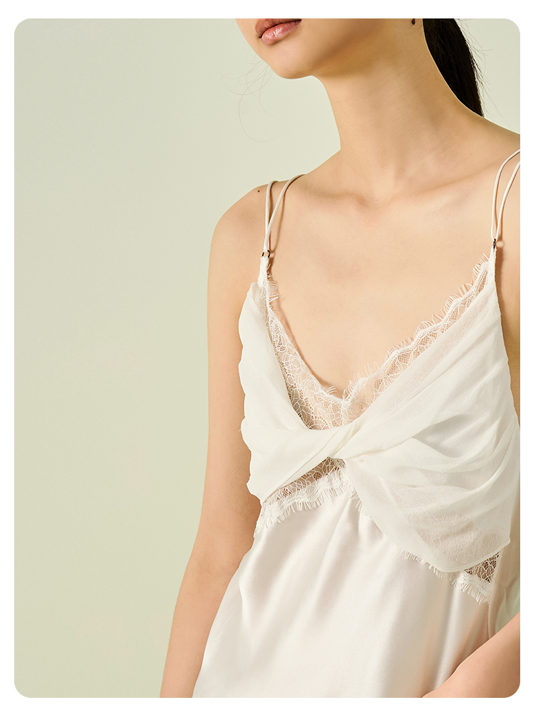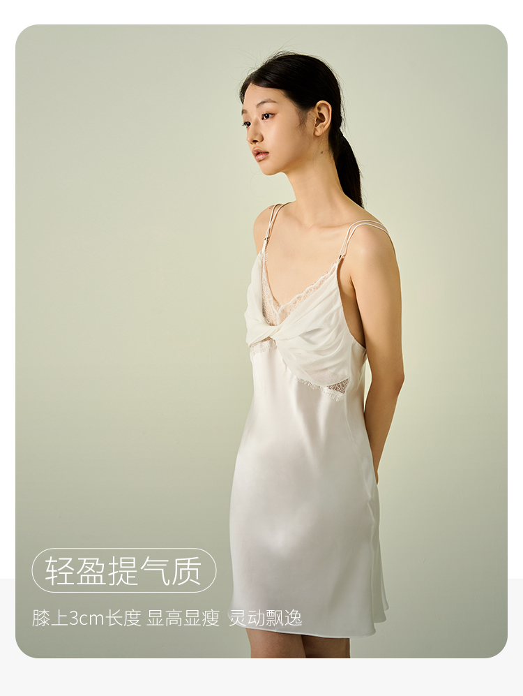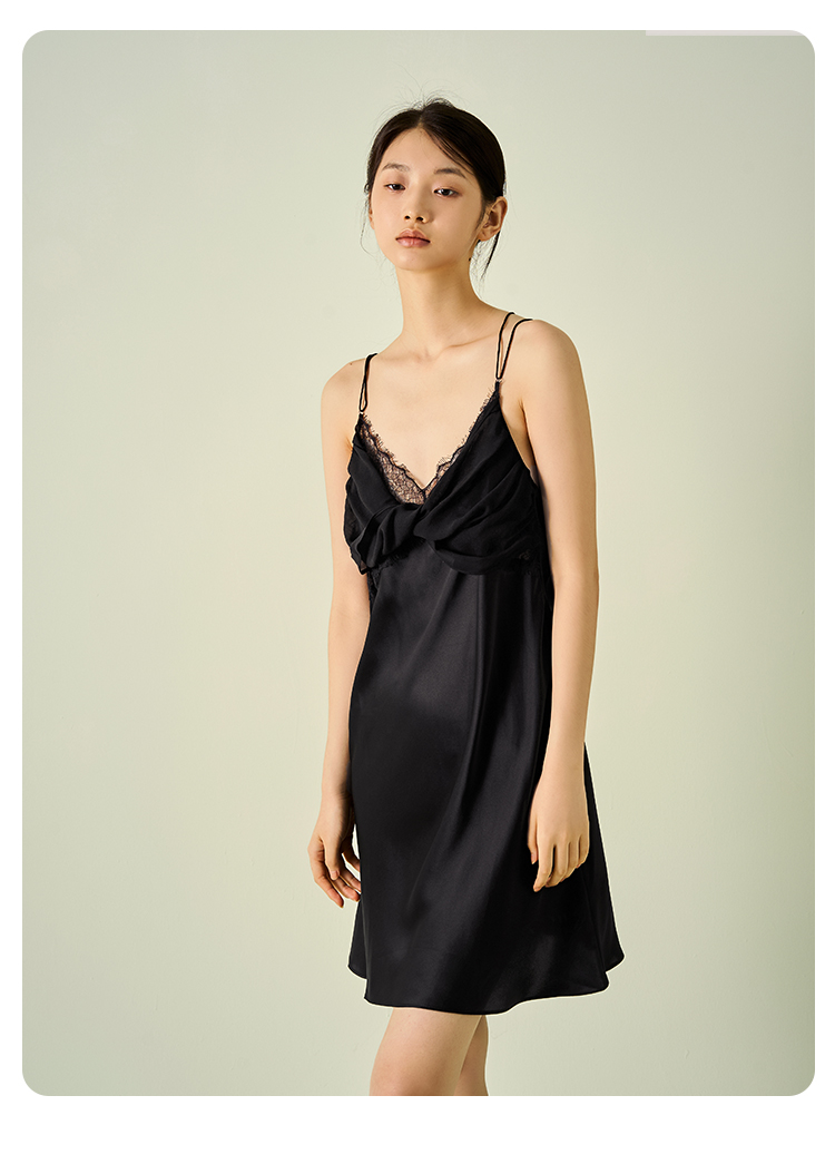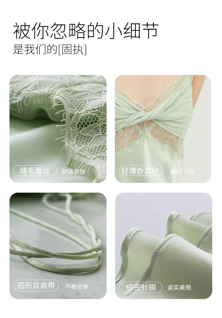 新品|蕾丝拼接 薄荷绿拼接SANGLUO真丝黑白色桑蚕丝礼服吊带睡裙