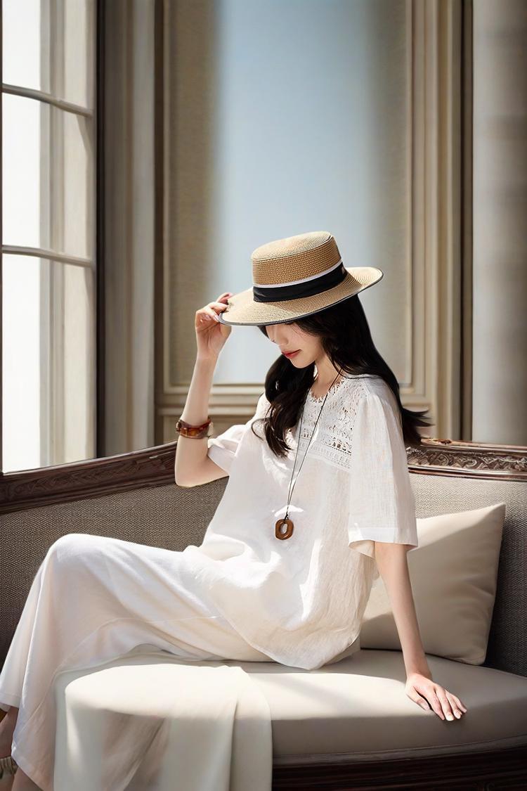 【LONGNVFAIR 蕾丝亚麻衬衫系列短袖/无袖版】微A版型 遮胯显高又显瘦 物理防晒 手感舒适柔软