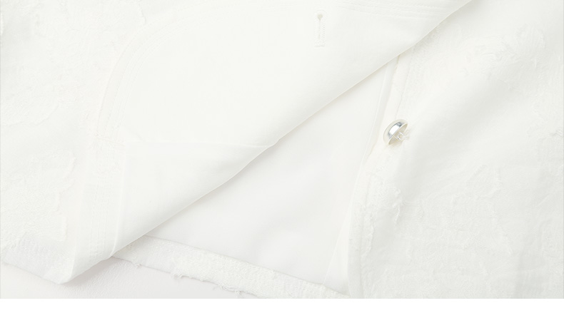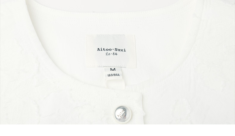 核心卖点:白色肌理面料、圆领设计、短袖版型、单排扣、小香风、显瘦显高