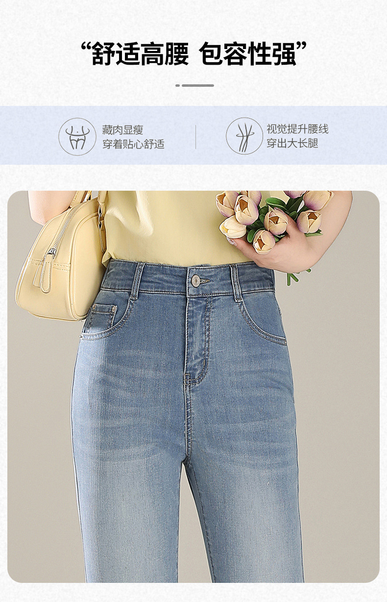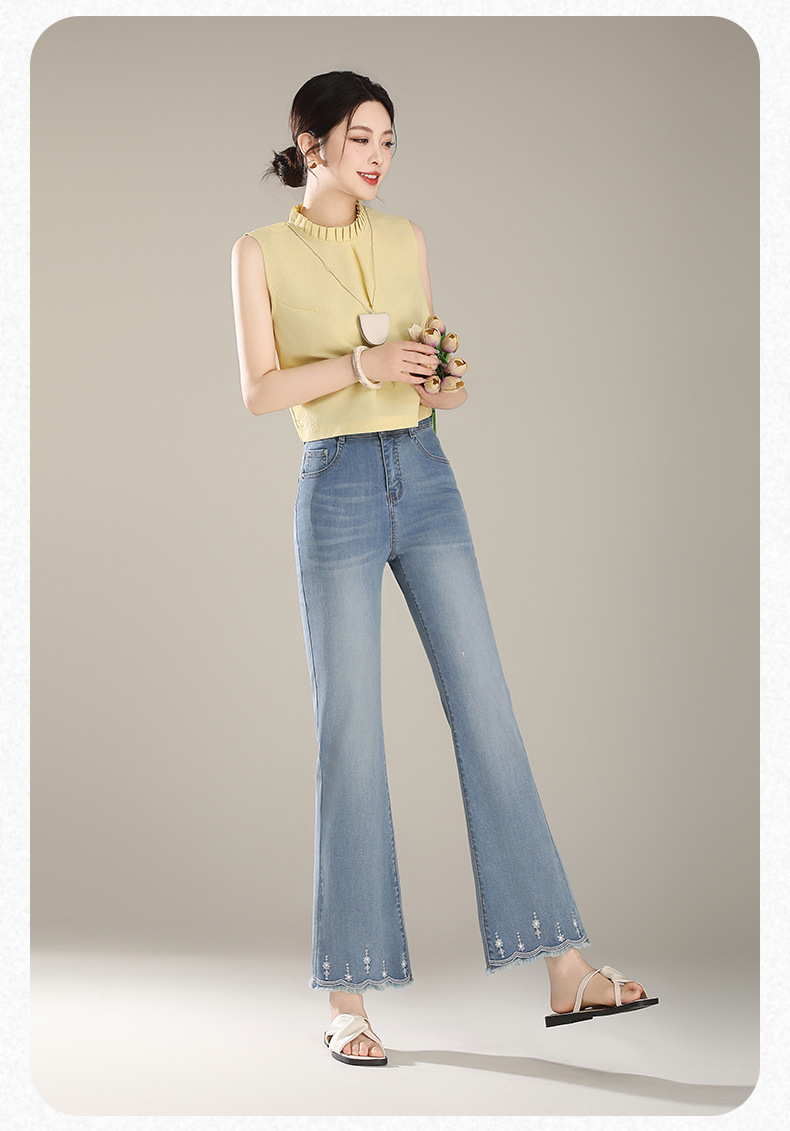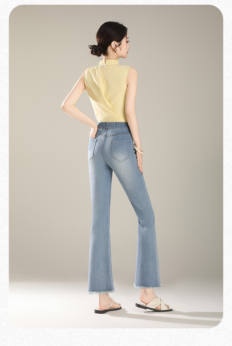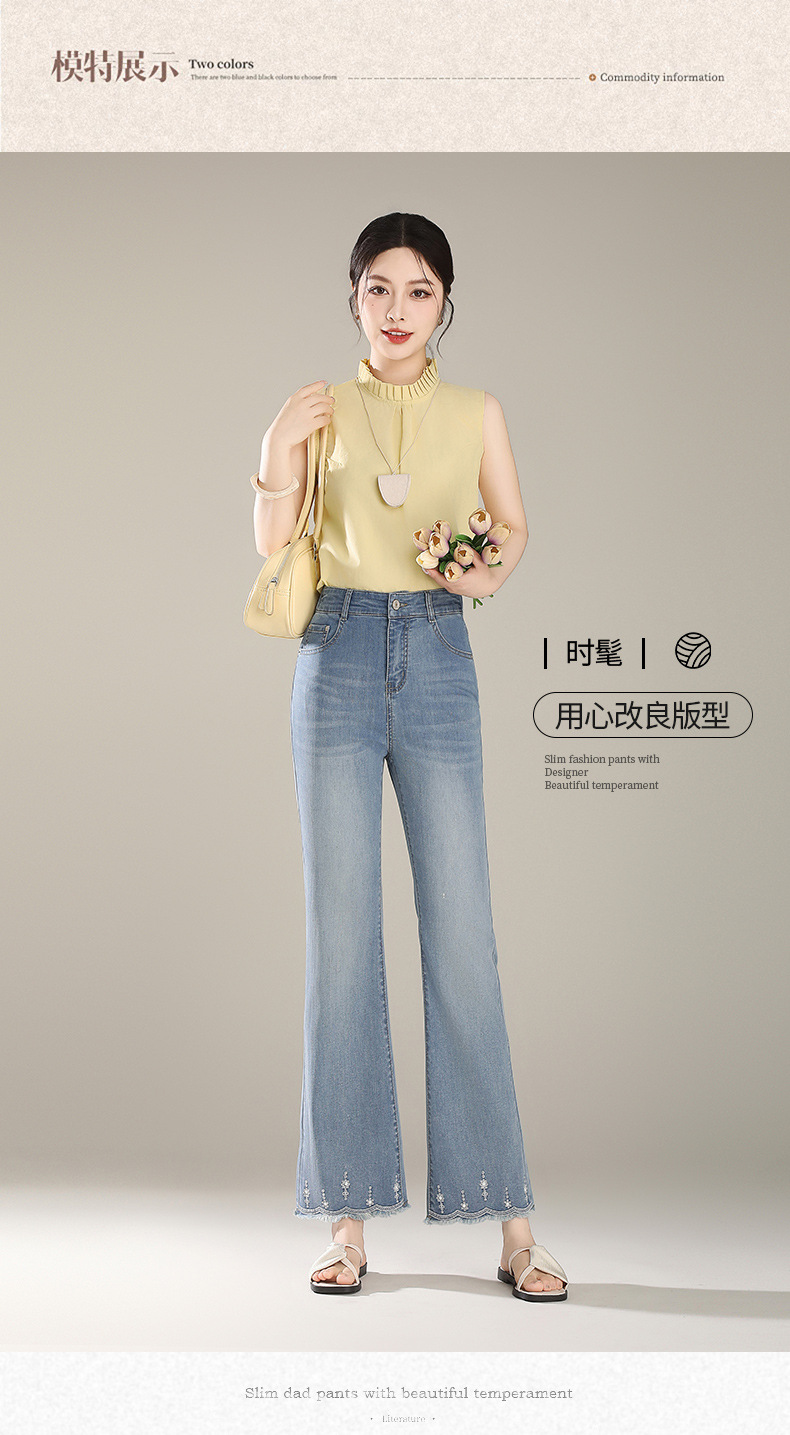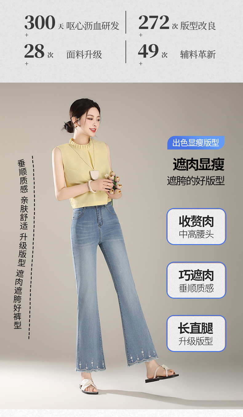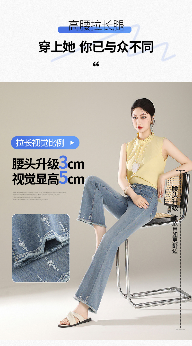 「自」全新升级【铂金会员165/天猫219/差价54】(20450)洛诗琳气质微喇牛仔裤2025夏季新款高腰显瘦镶钻毛边喇叭裤