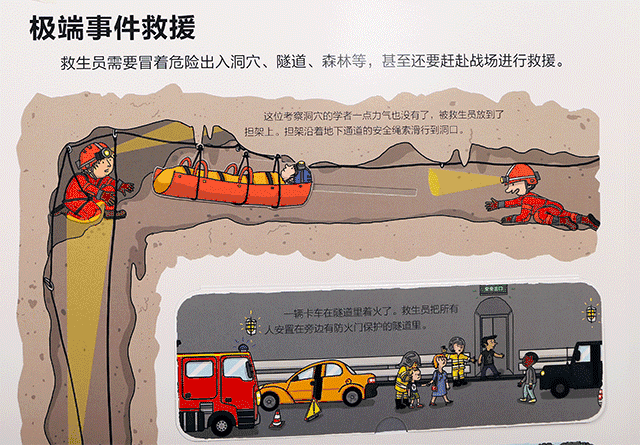 涵盖多种安全主题:火灾救援、海上救援、高山救援、水灾救援、极端事件救援,并用超大幅插图将灾难救援场景一一再现。危险任务救生员利用各式各样的救援机械进行救援的行为,指导孩子们面临突发状况时应该如何做,培养孩子们基本的安全意识!书中采用弹跳立体、翻翻页、推拉、转盘、趣味迷宫救援游戏等有趣的形式,使安全教育生动有趣!