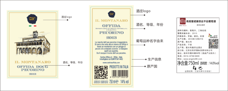 奥菲达(Offida)酒庄是目前唯一允许酿造最高等级DOCG级别佩哥里诺白葡萄酒的产区。葡萄在最好的葡萄园生产,手工甄选采摘,在12度恒温不锈钢罐中发酵,瓶中陈酿6个月。
