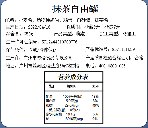 抹茶自由罐 甜品(下单后48小时内发货,指定京东快递发货)