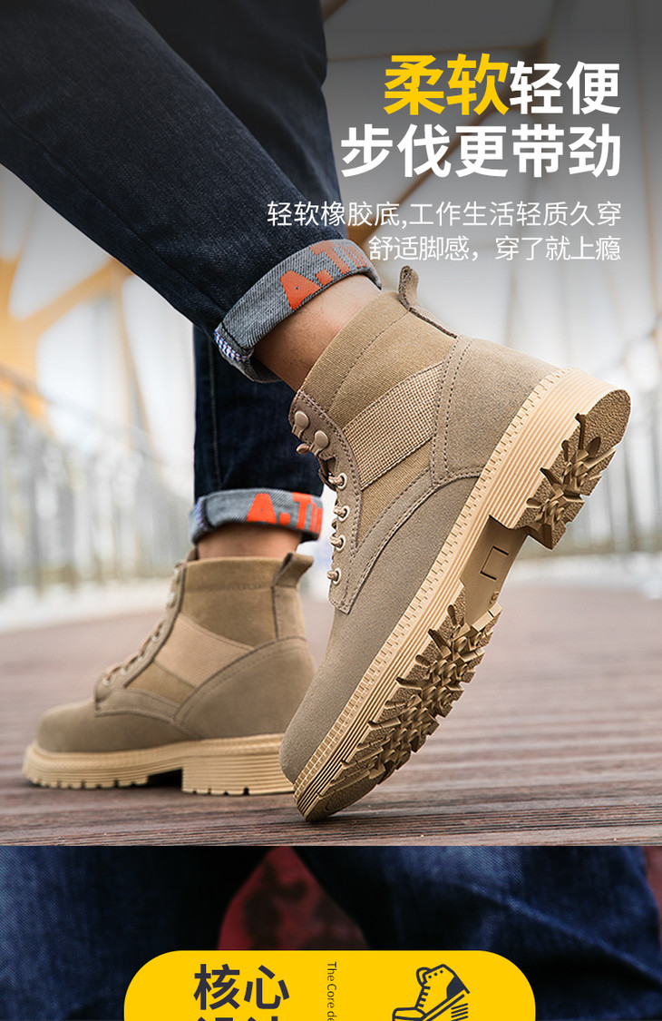 劳保鞋男防砸防刺穿高帮马丁靴钢包头凯夫拉中底耐磨橡胶底舒适牛皮安全防护功能鞋老保鞋 【高帮防护】【舒适耐磨】